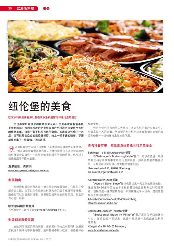 摘要:歐洲涂料展應用程序以及在歐洲涂料展館內和紐倫堡的餐廳