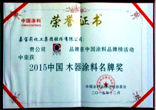 中國木器涂料名牌獎