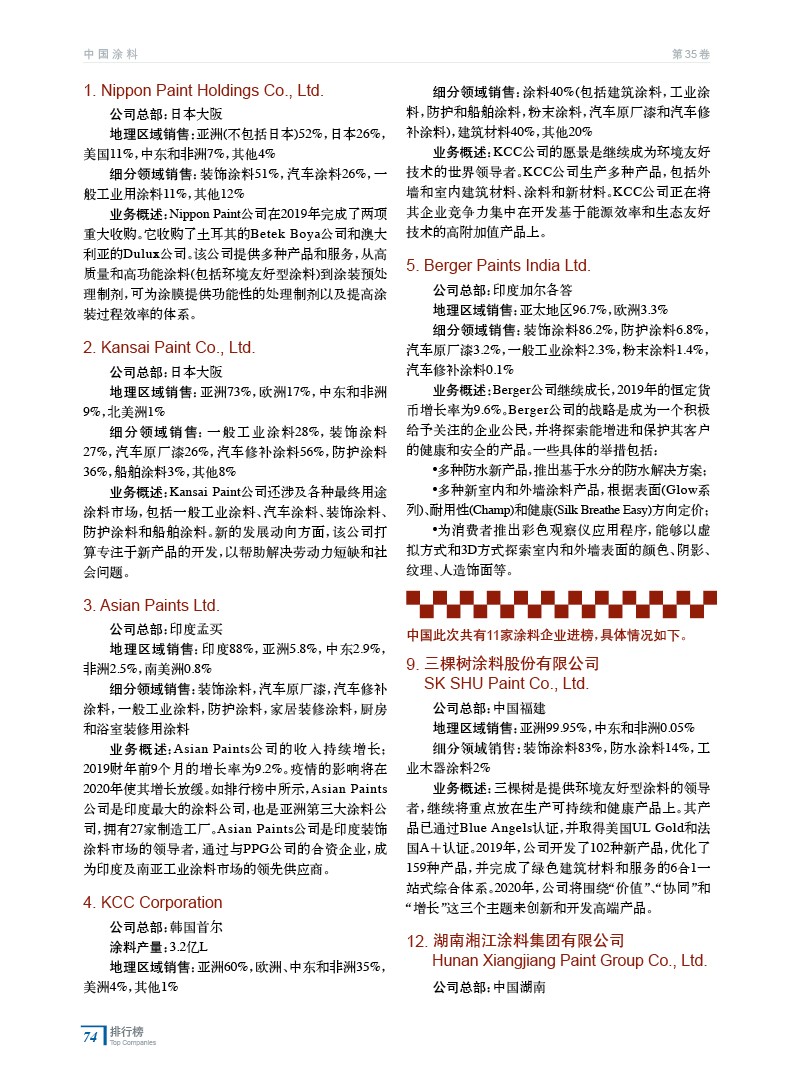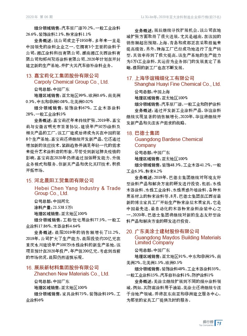 2020年亞太涂料制造企業排行榜(前25名)