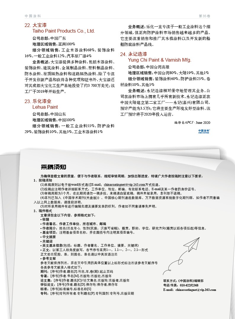 發表于2020-08-19 17:24:37| 次閱讀| 來源中國涂料| 作者Li Xi-lin, Bohn Douglas, Kirihara Osamu