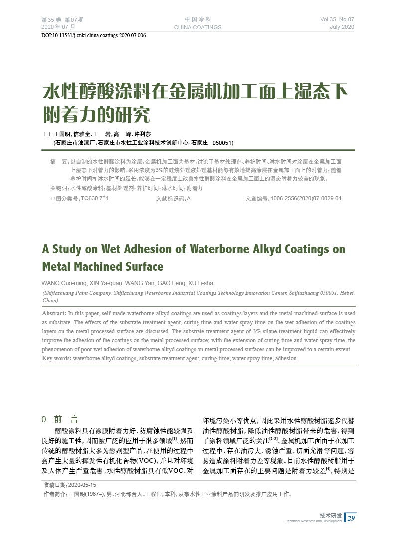 本文系作者@王國(guó)明,信雅全,王 巖,高 峰,許利莎 授權(quán)中國(guó)涂料網(wǎng)發(fā)表,并經(jīng)中國(guó)涂料網(wǎng)編輯,未經(jīng)允許不得轉(zhuǎn)載,如需轉(zhuǎn)載請(qǐng)聯(lián)系chinacoatingnet@vip.163.com