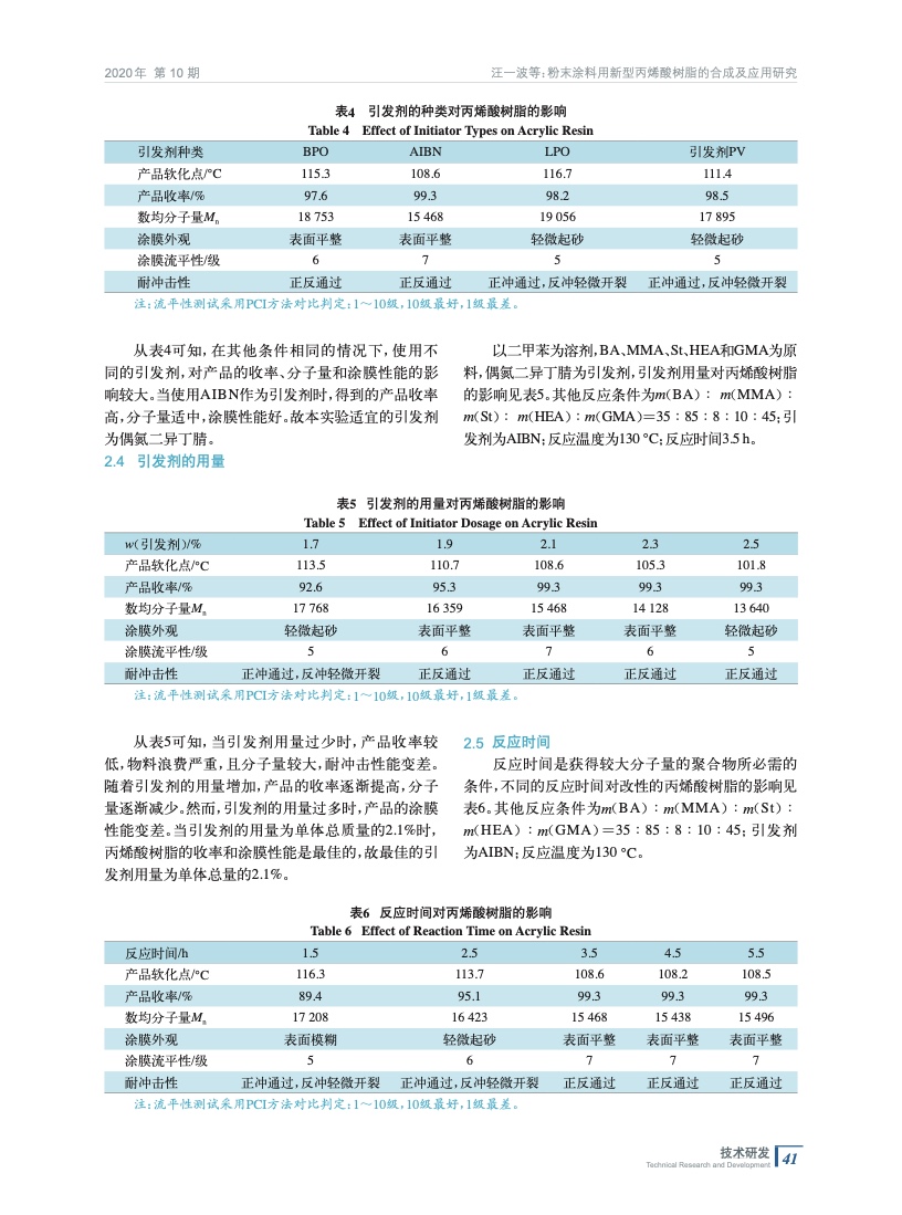 粉末涂料用新型丙烯酸樹脂的合成及應用研究
