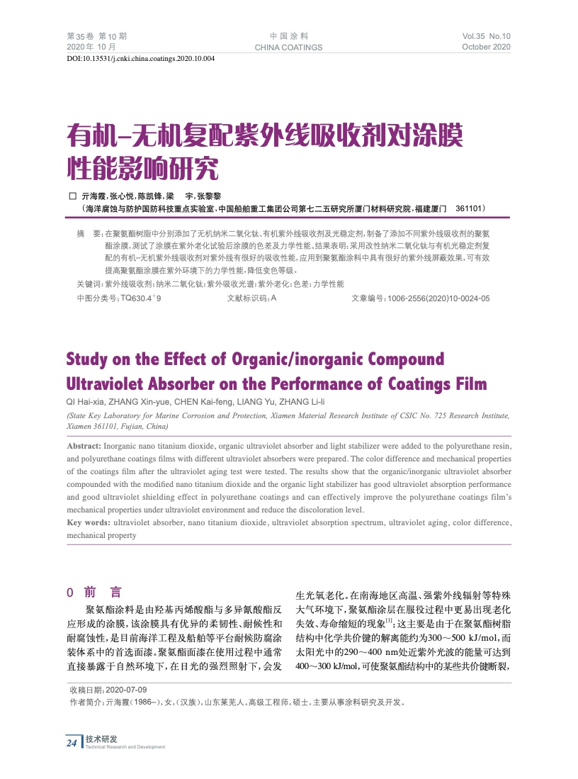 發表于2020-12-30 11:25:01| 次閱讀| 來源中國涂料| 作者亓海霞,張心悅,陳凱鋒,梁 宇,張黎黎