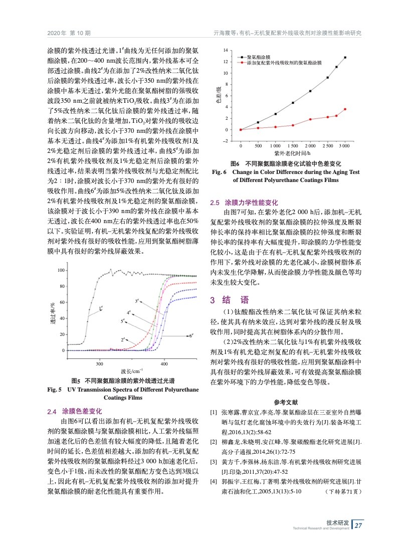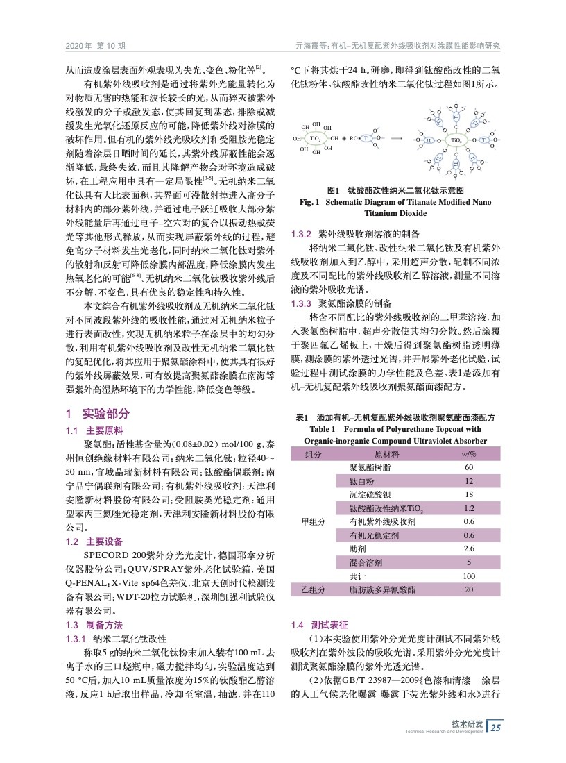 有機−無機復配紫外線吸收劑對涂膜性能影響研究