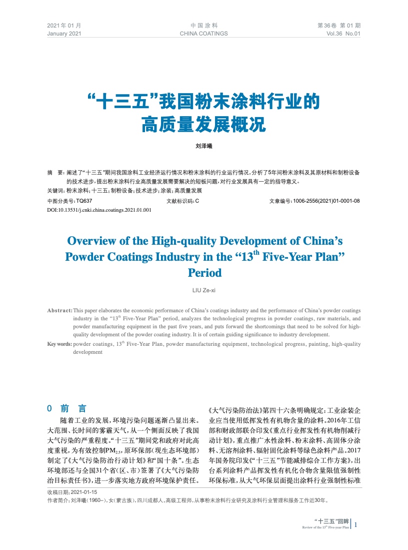 “十三五”我國粉末涂料行業(yè)的高質(zhì)量發(fā)展概況