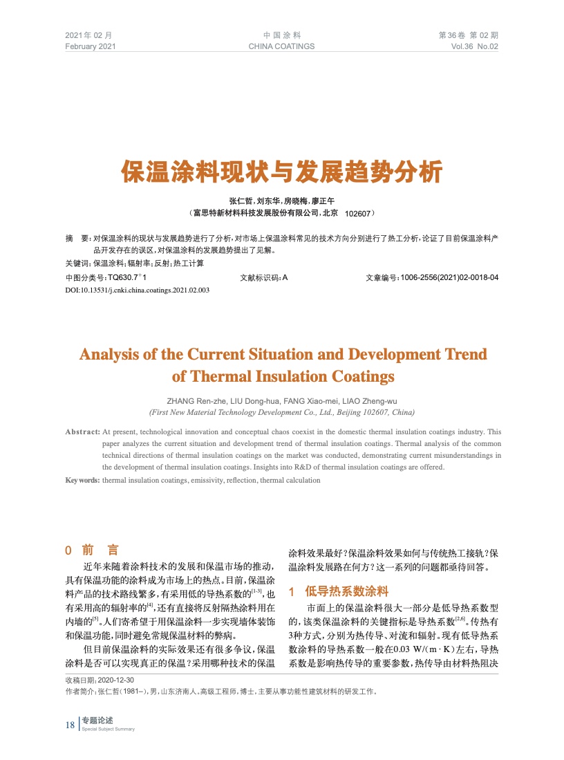 對保溫涂料的現狀與發展趨勢進行了分析,對市場上保溫涂料常見的技術方向分別進行了熱工分析,論證了目前保溫涂料產品開發存在的誤區,對保溫涂料的發展趨勢提出了見解。