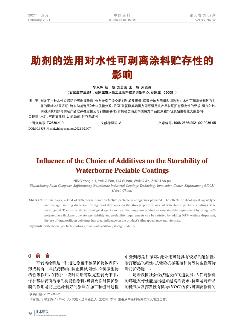 本文系作者@寧永輝,楊 帆,劉思豪,王 錦,周奧浦 授權(quán)中國涂料網(wǎng)發(fā)表,并經(jīng)中國涂料網(wǎng)編輯,未經(jīng)允許不得轉(zhuǎn)載,如需轉(zhuǎn)載請聯(lián)系chinacoatingnet@vip.163.com