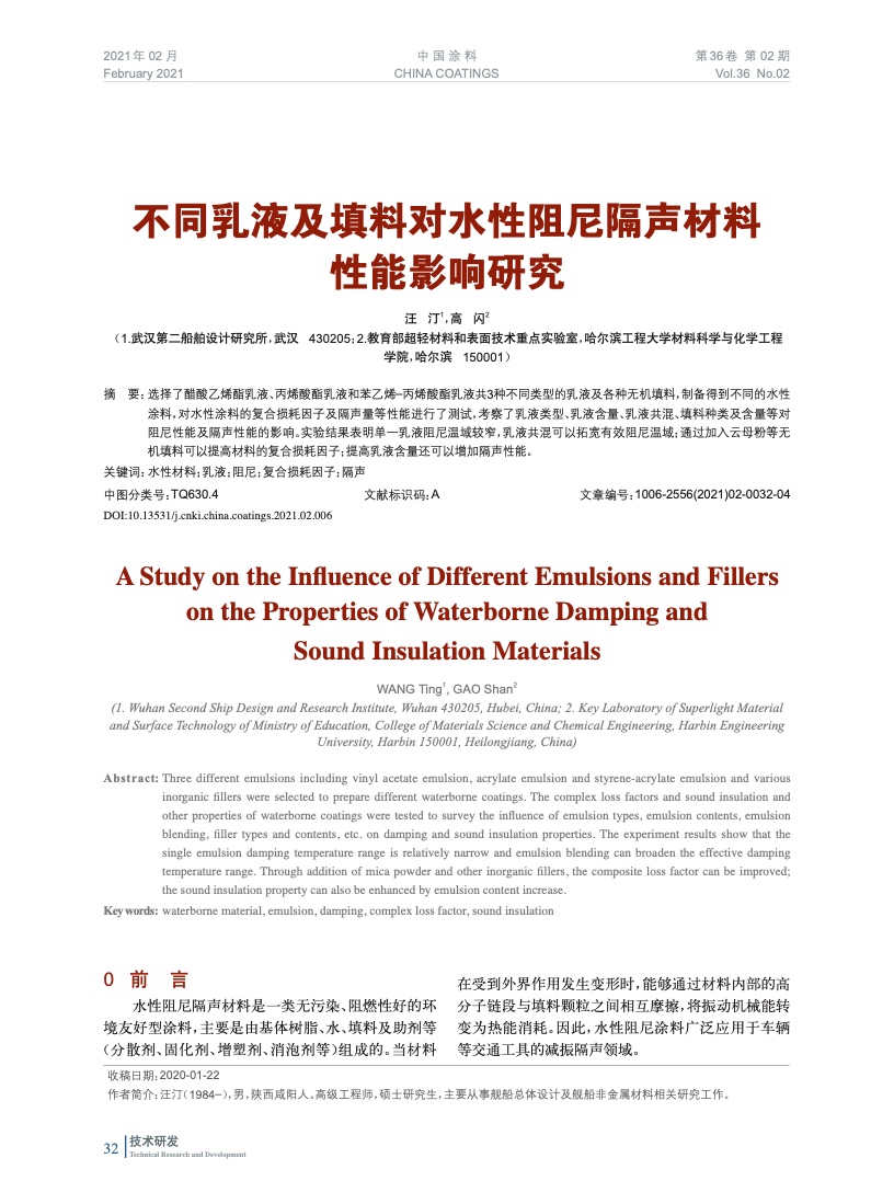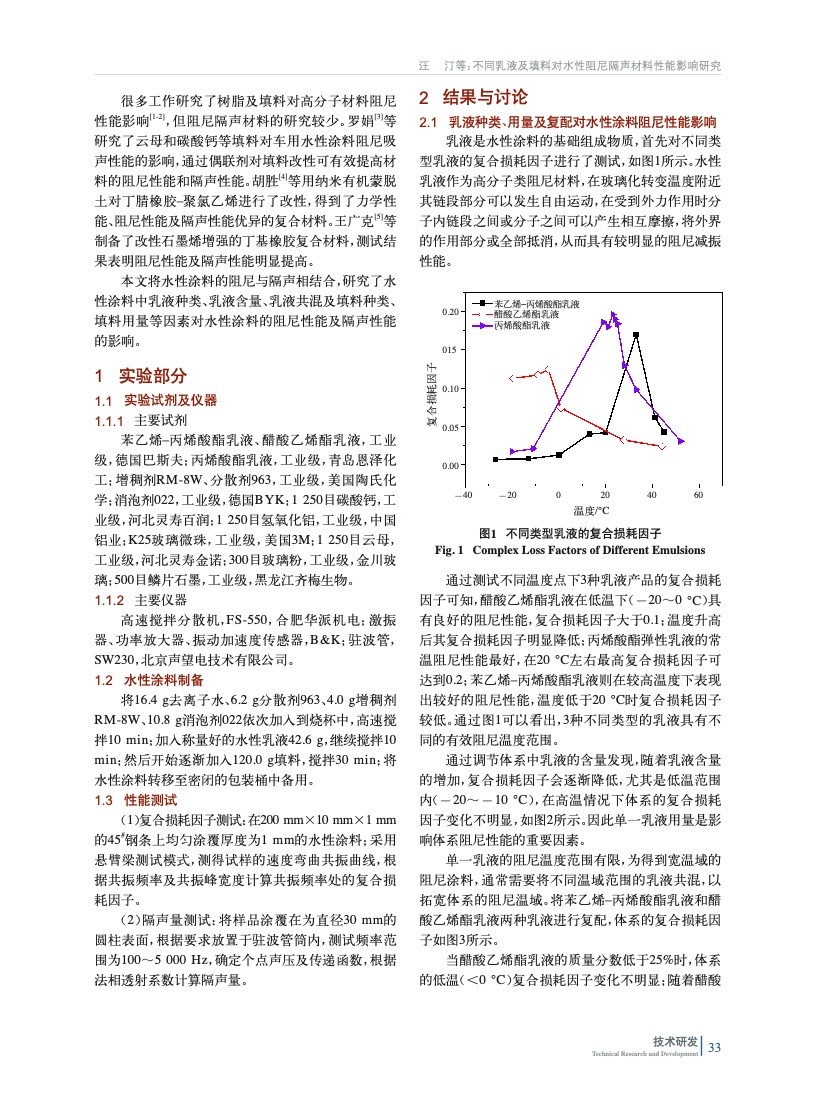 不同乳液及填料對水性阻尼隔聲材料性能影響研究