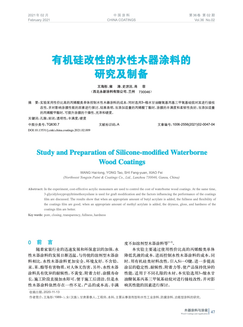 發表于2021-04-16 9:42:29| 次閱讀| 來源中國涂料| 作者王海彤,雍 濤,史淓沅,肖 菲