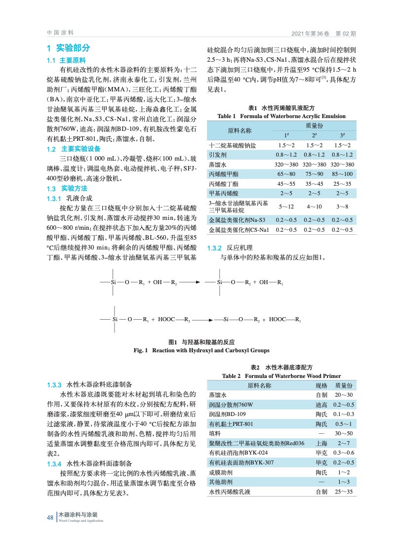有機硅改性的水性木器涂料的研究及制備