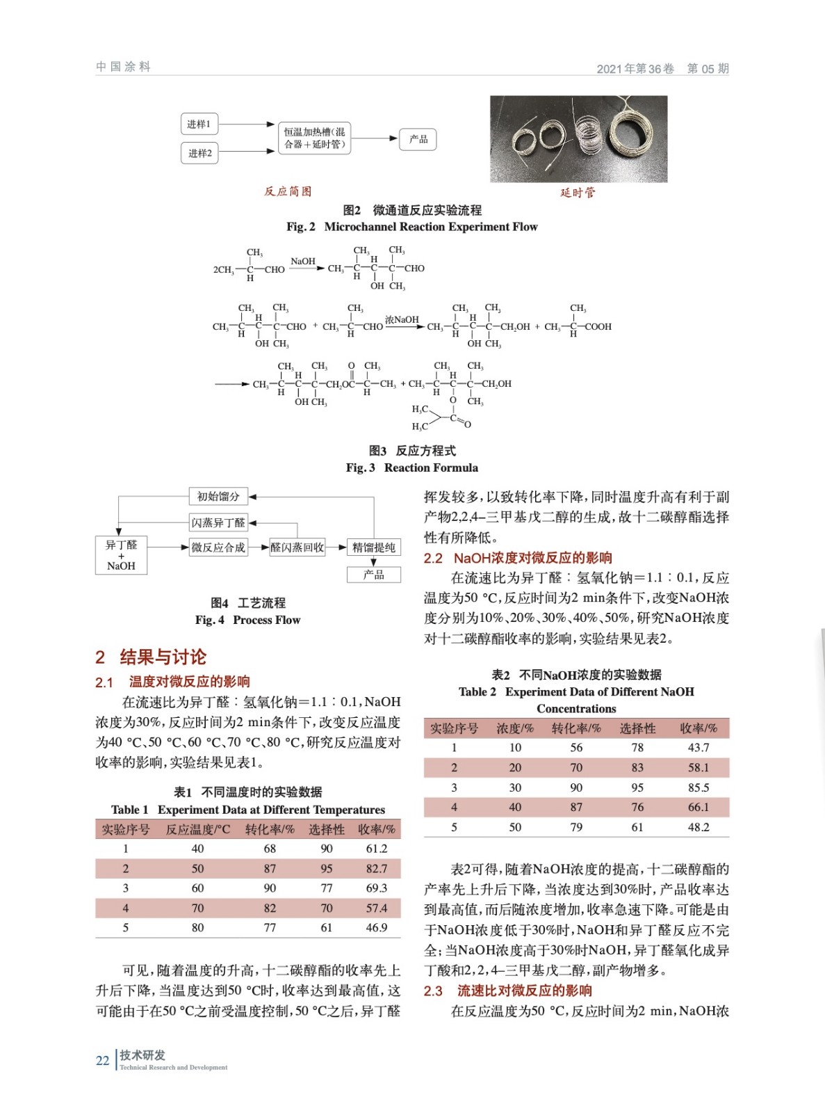 摘要:采用異丁醛和堿通過微反應儀器合成十二碳醇酯。實驗選用異丁醛和NaOH,系統地研究了堿的濃度、含量、溫度對微反應的影響。研究表明:當異丁醛和NaOH流速比為1.1︰0.1(流速單位:mL/min),反應溫度為50 ℃,NaOH濃度為30%,目標產物收率達86.5%。