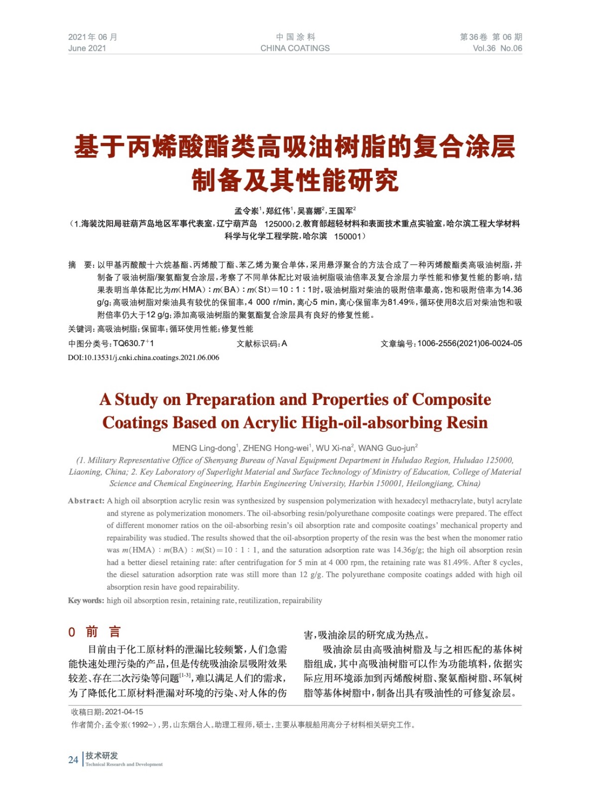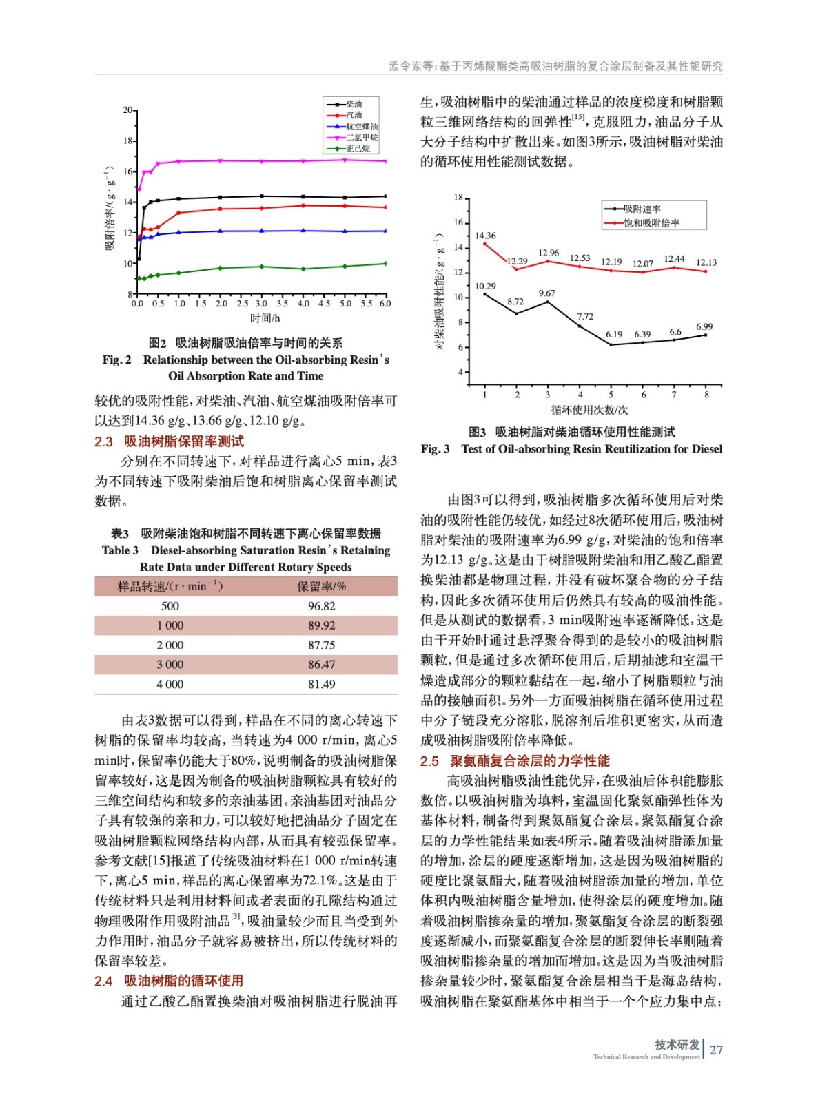 基于丙烯酸酯類高吸油樹脂的復合涂層制備及其性能研究