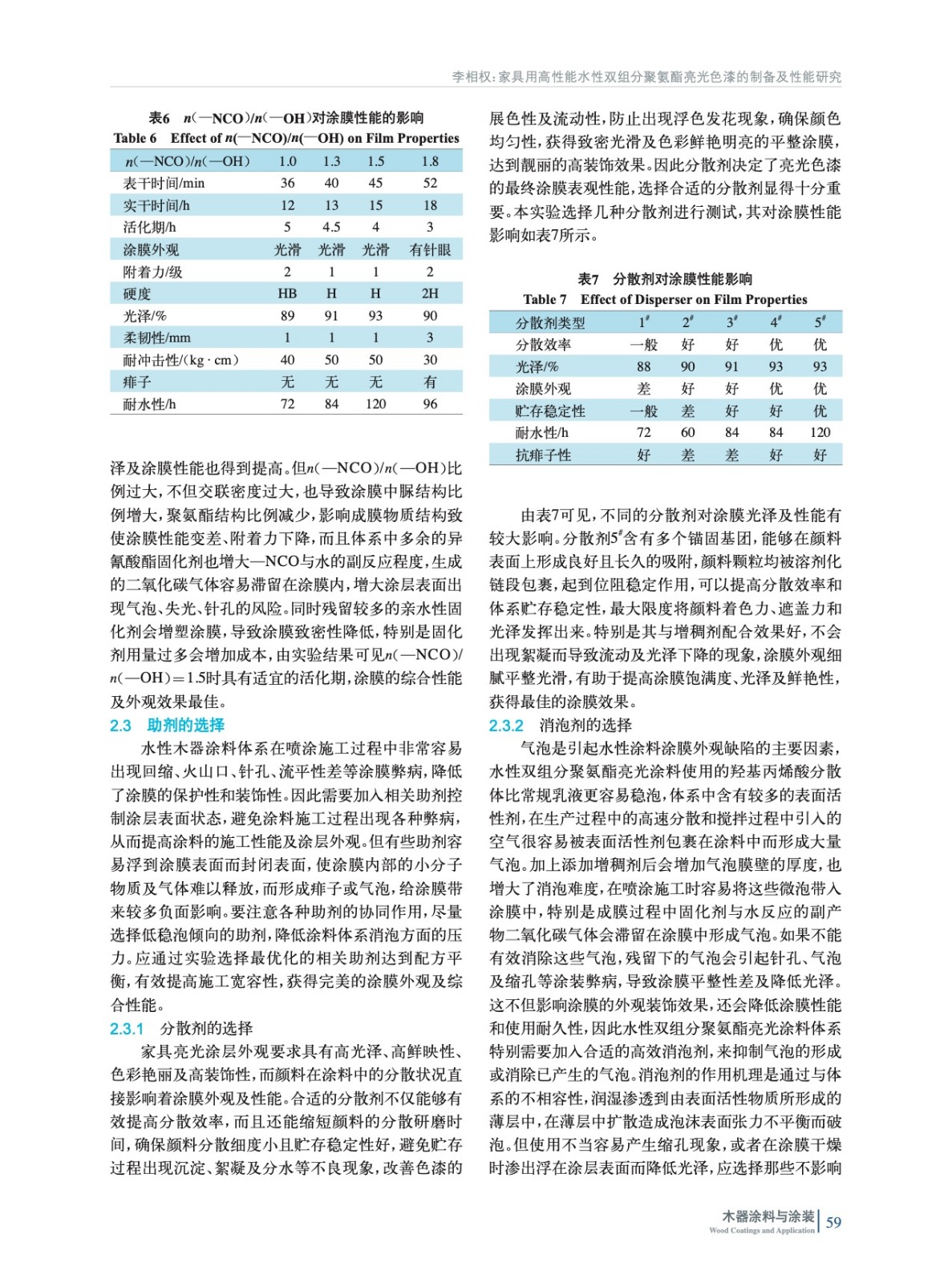 家具用高性能水性雙組分聚氨酯亮光色漆的制備及性能研究