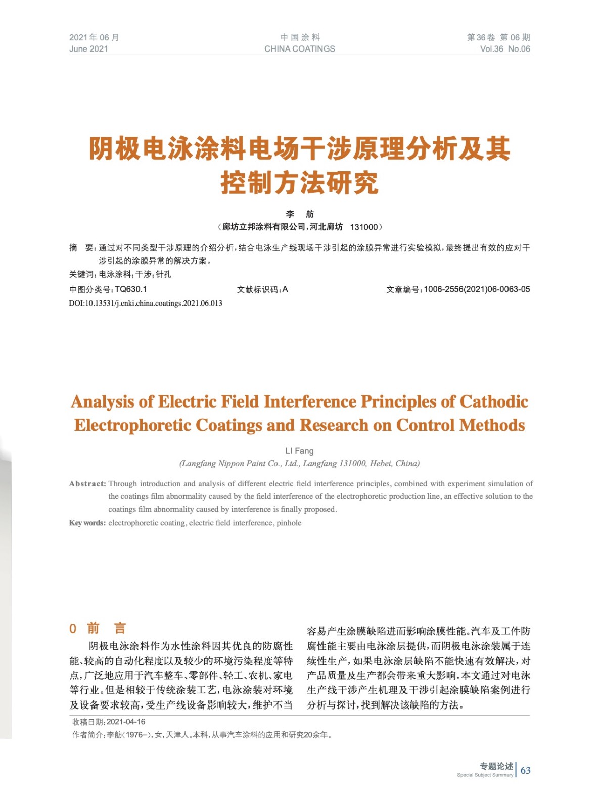 本文系作者@李 舫 授權中國涂料網發表,并經中國涂料網編輯,未經允許不得轉載,如需轉載請聯系chinacoatingnet@vip.163.com