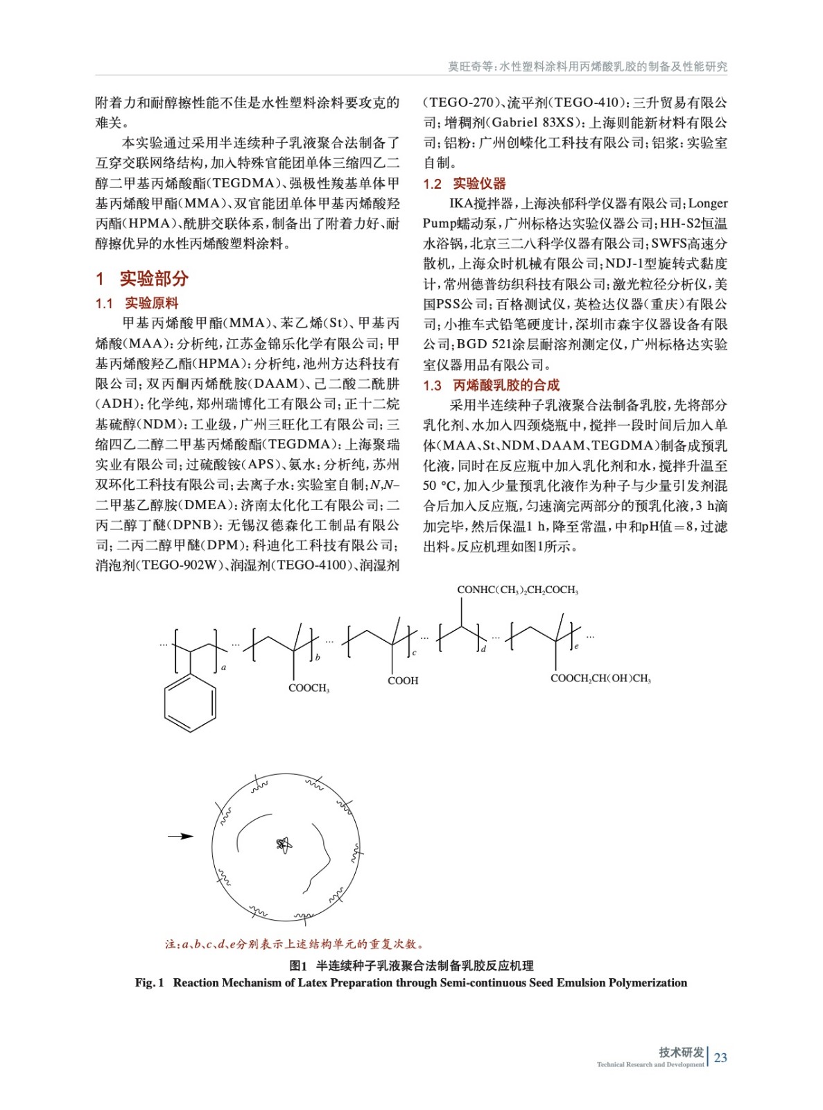 水性塑料涂料用丙烯酸乳膠的制備及性能研究