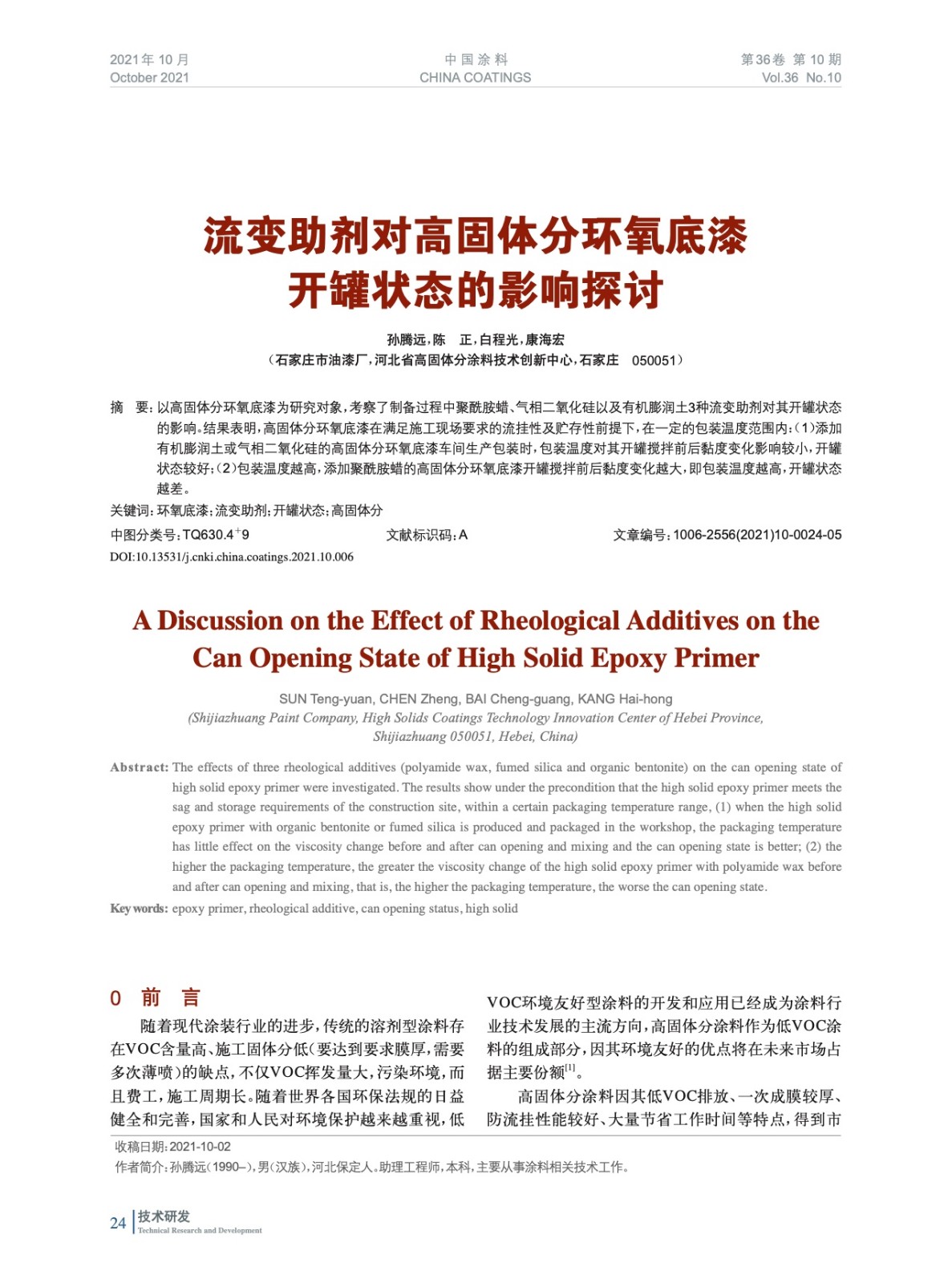 本文系作者@孫騰遠,陳 正,白程光,康海宏 授權中國涂料網發表,并經中國涂料網編輯,未經允許不得轉載,如需轉載請聯系chinacoatingnet@vip.163.com