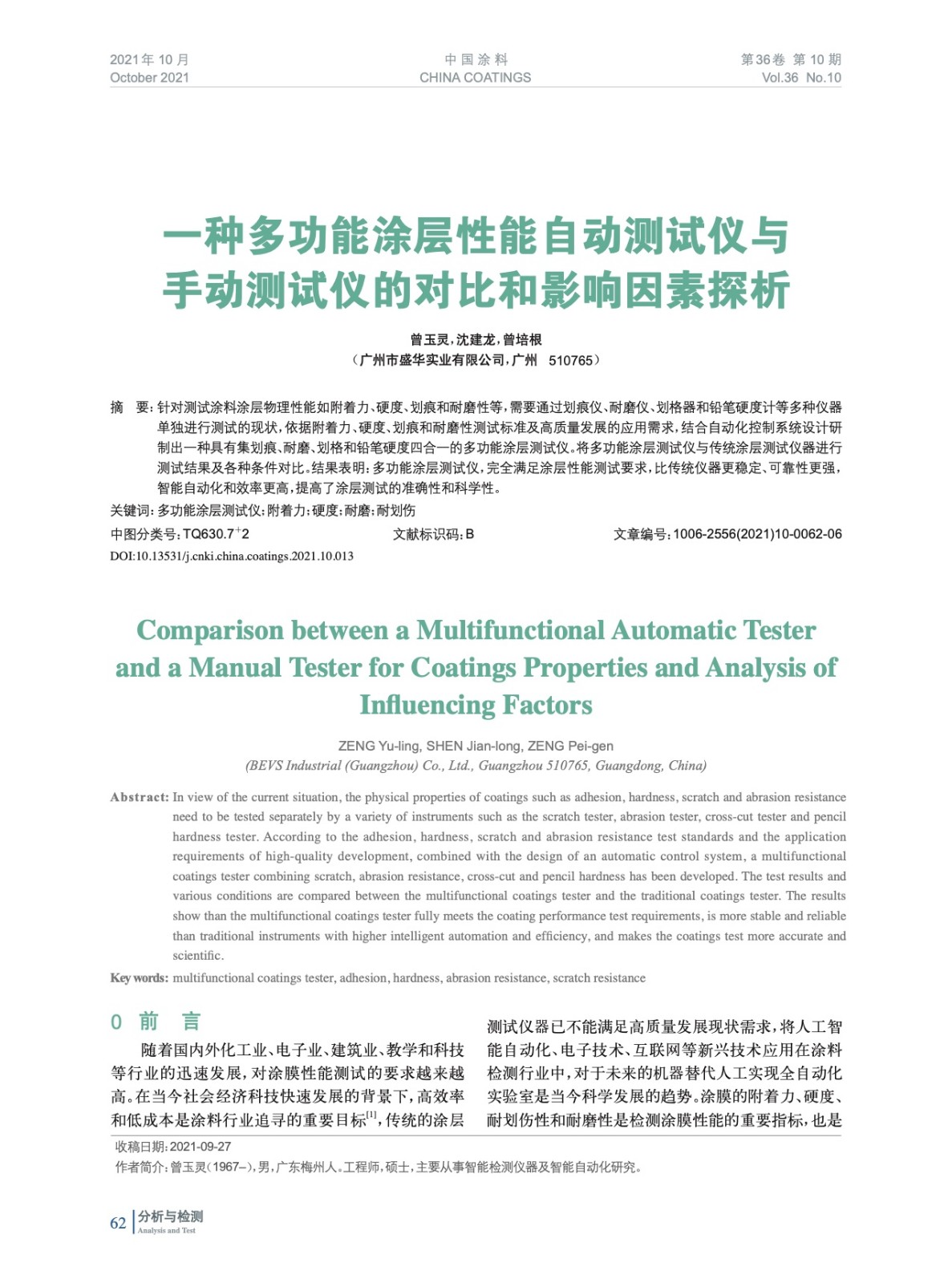一種多功能涂層性能自動測試儀與手動測試儀的對比和影響因素探析