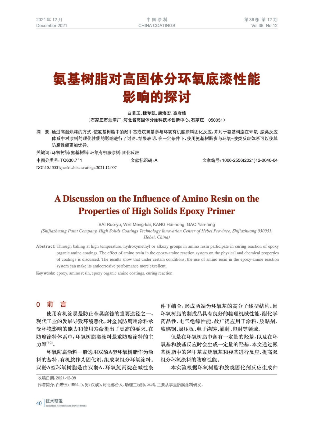 本文系作者@白若玉,魏夢凱,康海宏,高彥鋒 授權中國涂料網(wǎng)發(fā)表,并經(jīng)中國涂料網(wǎng)編輯,未經(jīng)允許不得轉(zhuǎn)載,如需轉(zhuǎn)載請聯(lián)系chinacoatingnet@vip.163.com