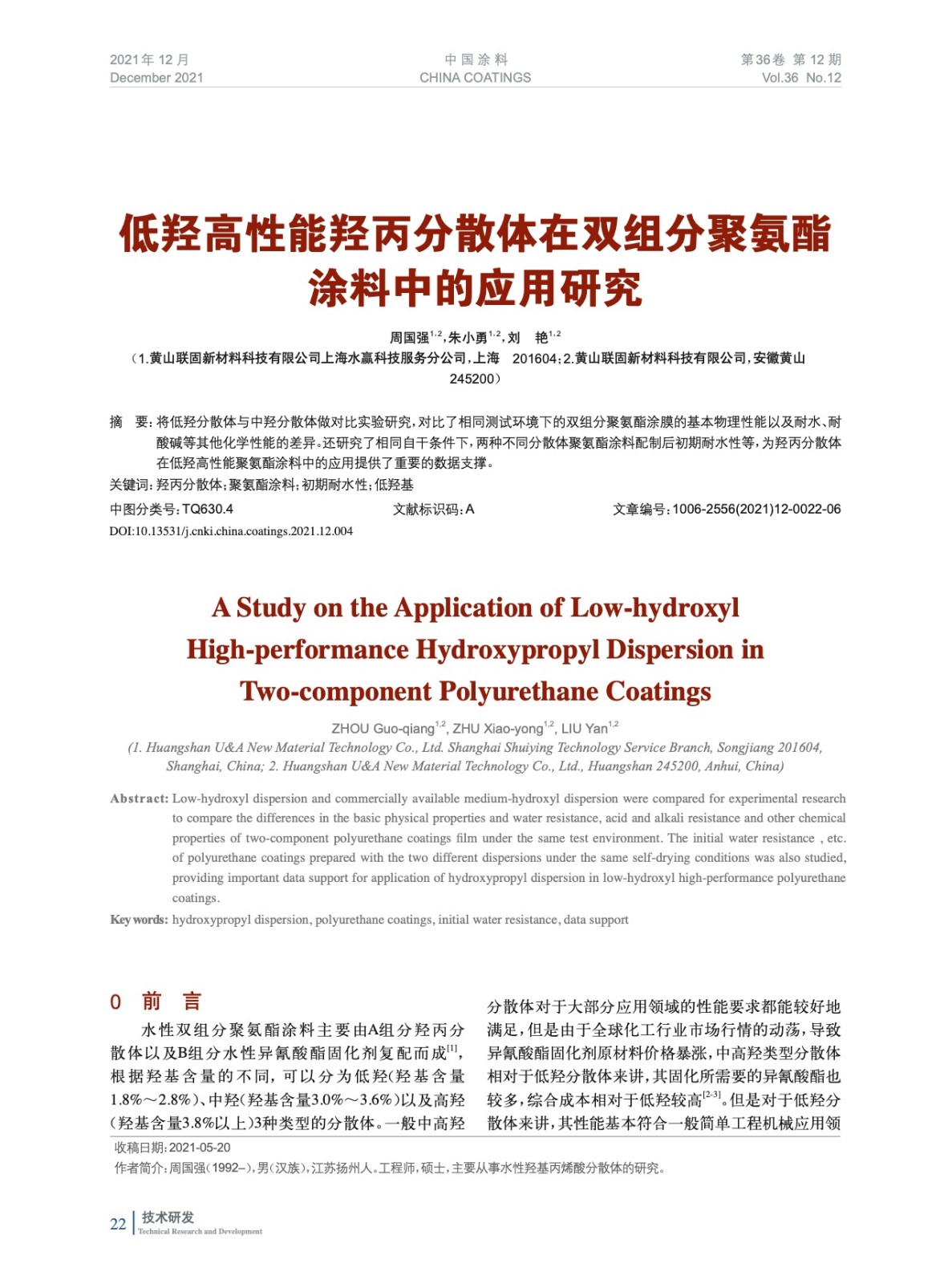 本文系作者@周國強,朱小勇,劉 艷 授權中國涂料網發表,并經中國涂料網編輯,未經允許不得轉載,如需轉載請聯系chinacoatingnet@vip.163.com