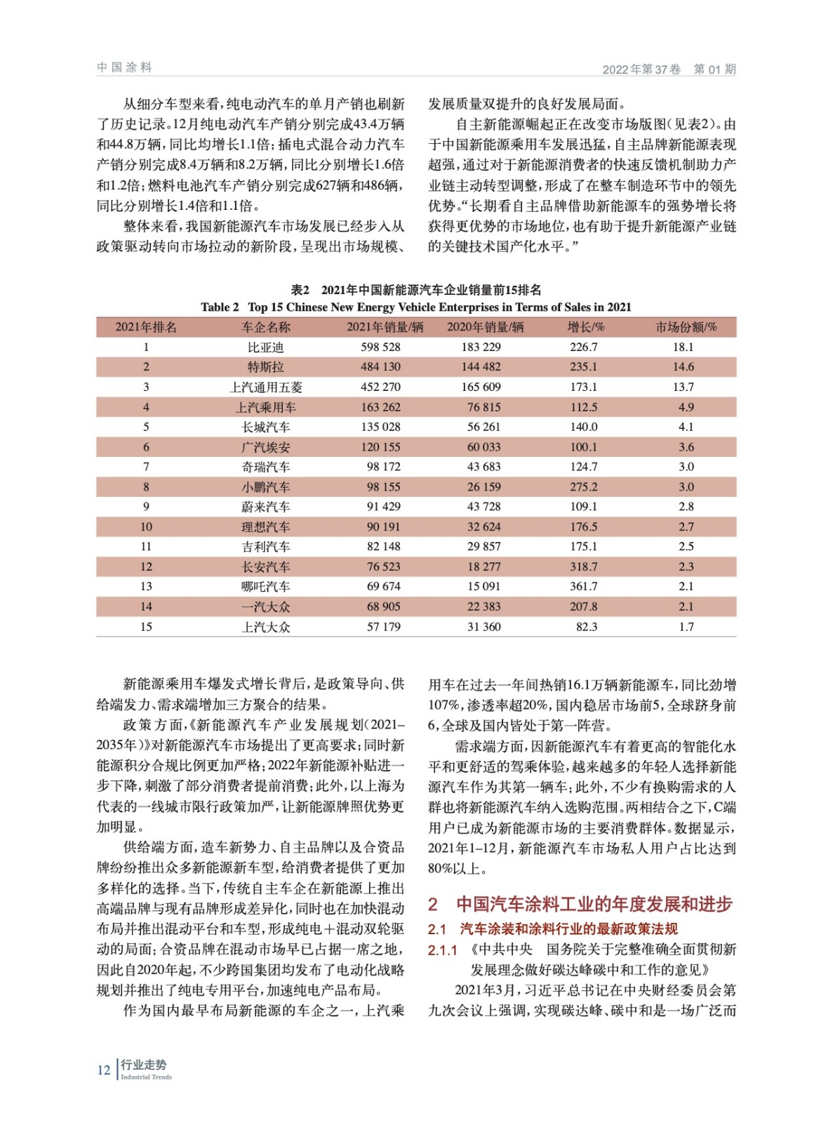2021年中國汽車涂料工業發展回顧及2022年展望(上)