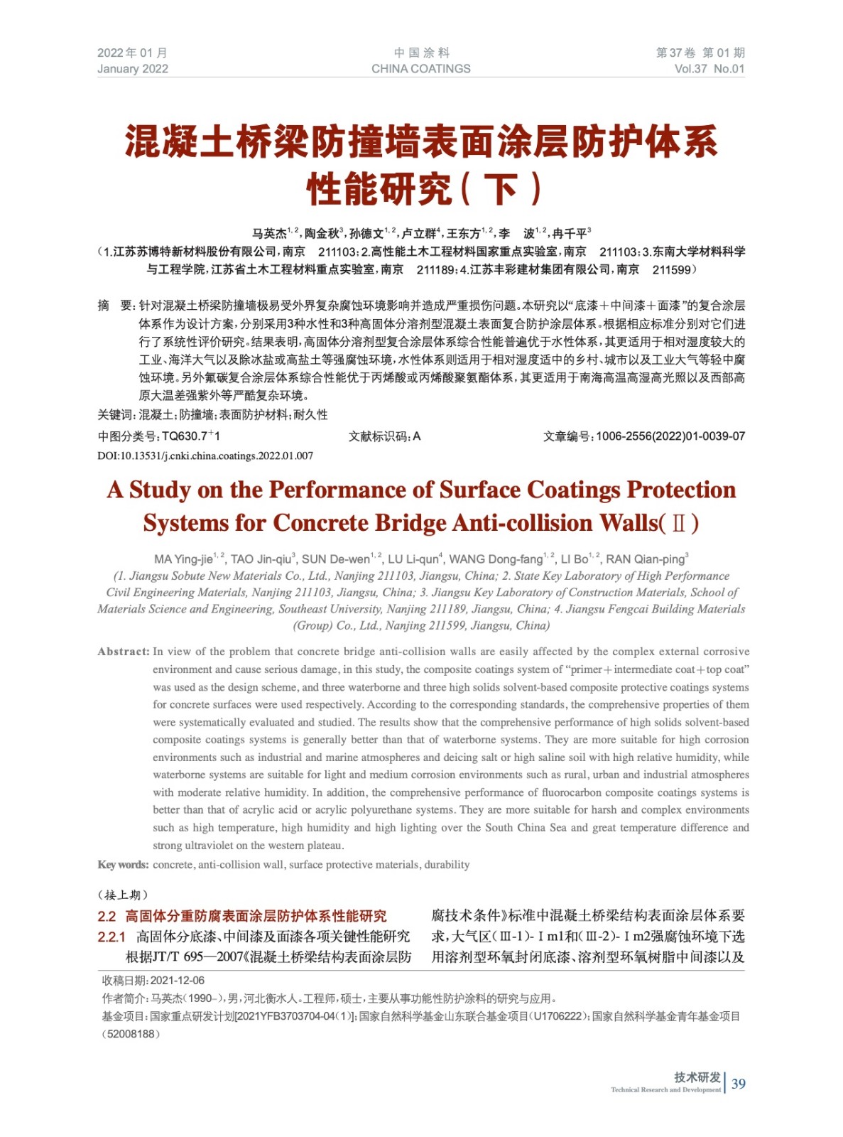 本文系作者@馬英杰,陶金秋,孫德文,盧立群,王東方,李 波,冉千平 授權(quán)中國(guó)涂料網(wǎng)發(fā)表,并經(jīng)中國(guó)涂料網(wǎng)編輯,未經(jīng)允許不得轉(zhuǎn)載,如需轉(zhuǎn)載請(qǐng)聯(lián)系chinacoatingnet@vip.163.com