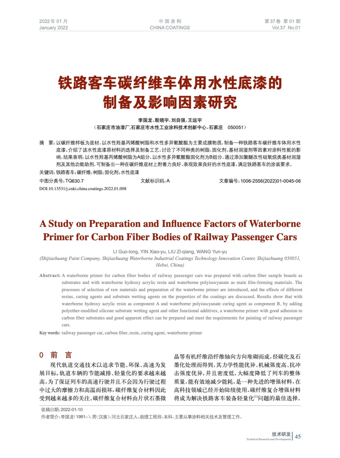 鐵路客車碳纖維車體用水性底漆的制備及影響因素研究