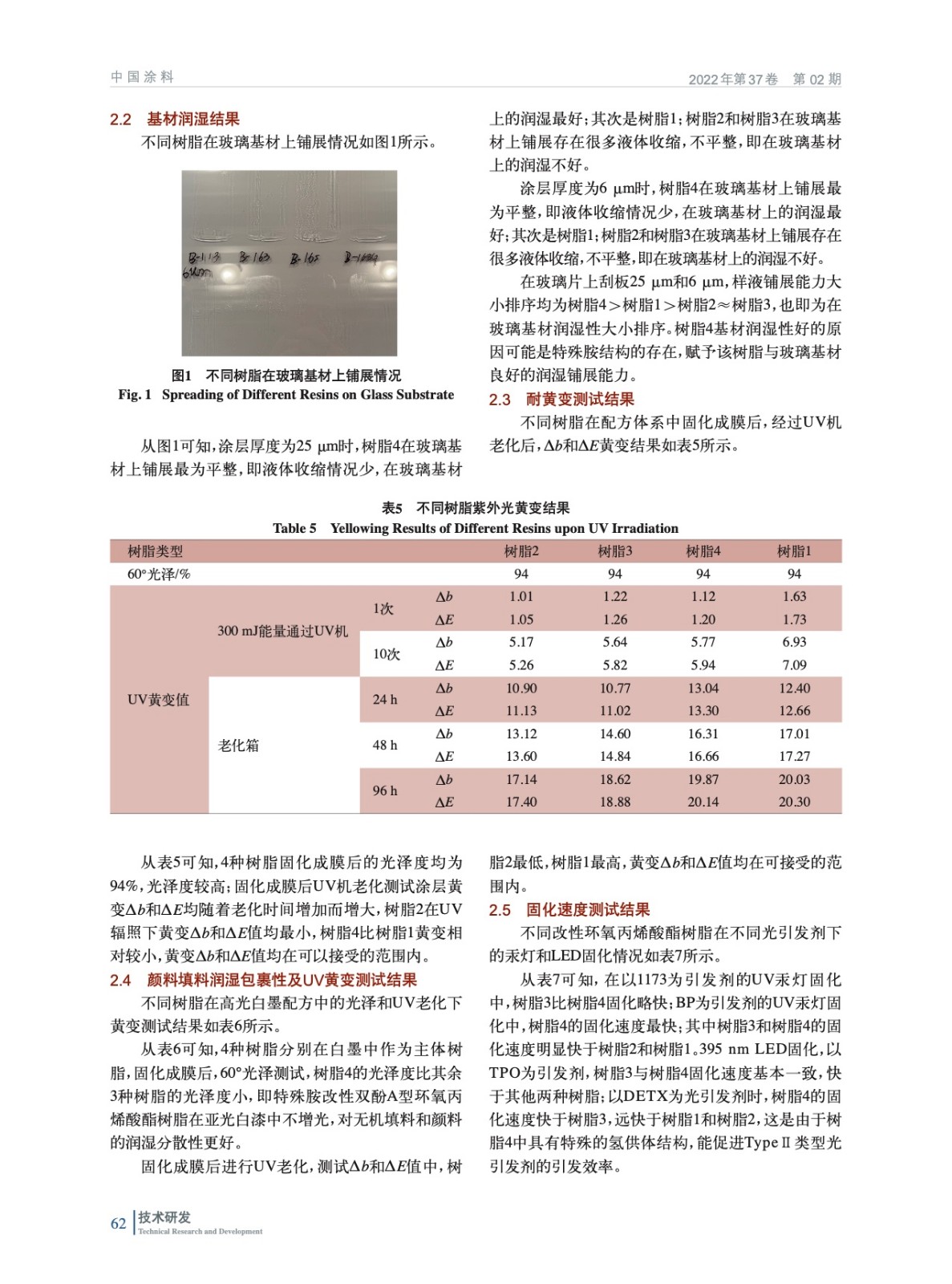 摘要:研究了3種改性雙酚A型環氧丙烯酸酯樹脂和標準雙酚A型環氧丙烯酸酯樹脂的性能對比,結果表明,特殊胺改性雙酚A型環氧丙烯酸酯樹脂B-168G比標準雙酚A型環氧丙烯酸酯樹脂B-113具有更低的黏度和黏性,稀釋性能更佳;UV汞燈或UVLED輻照固化下,改性樹脂的固化速度更快;改性樹脂的黃變均較小,且基材的潤濕性均較優。在BP/DETX作為光引發劑下,B-168G具有良好的UV響應活性。