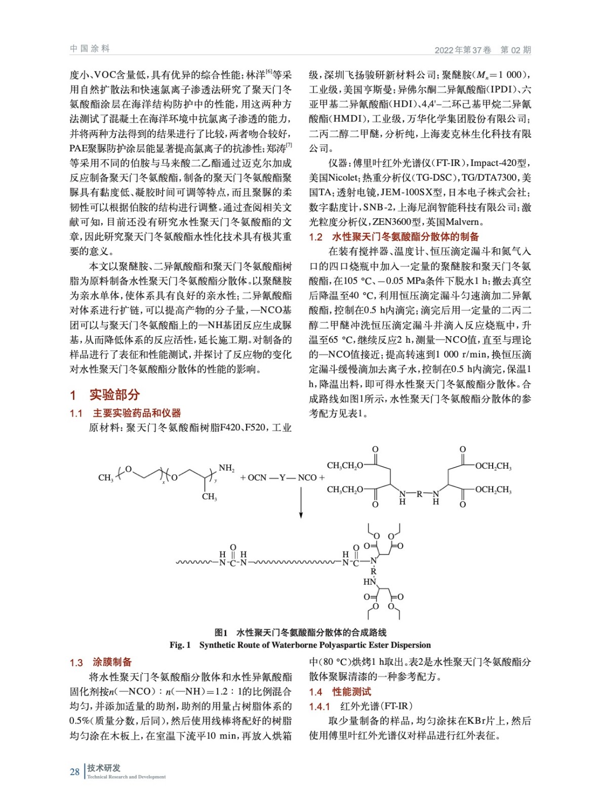 水性聚天門冬氨酸酯分散體的合成研究