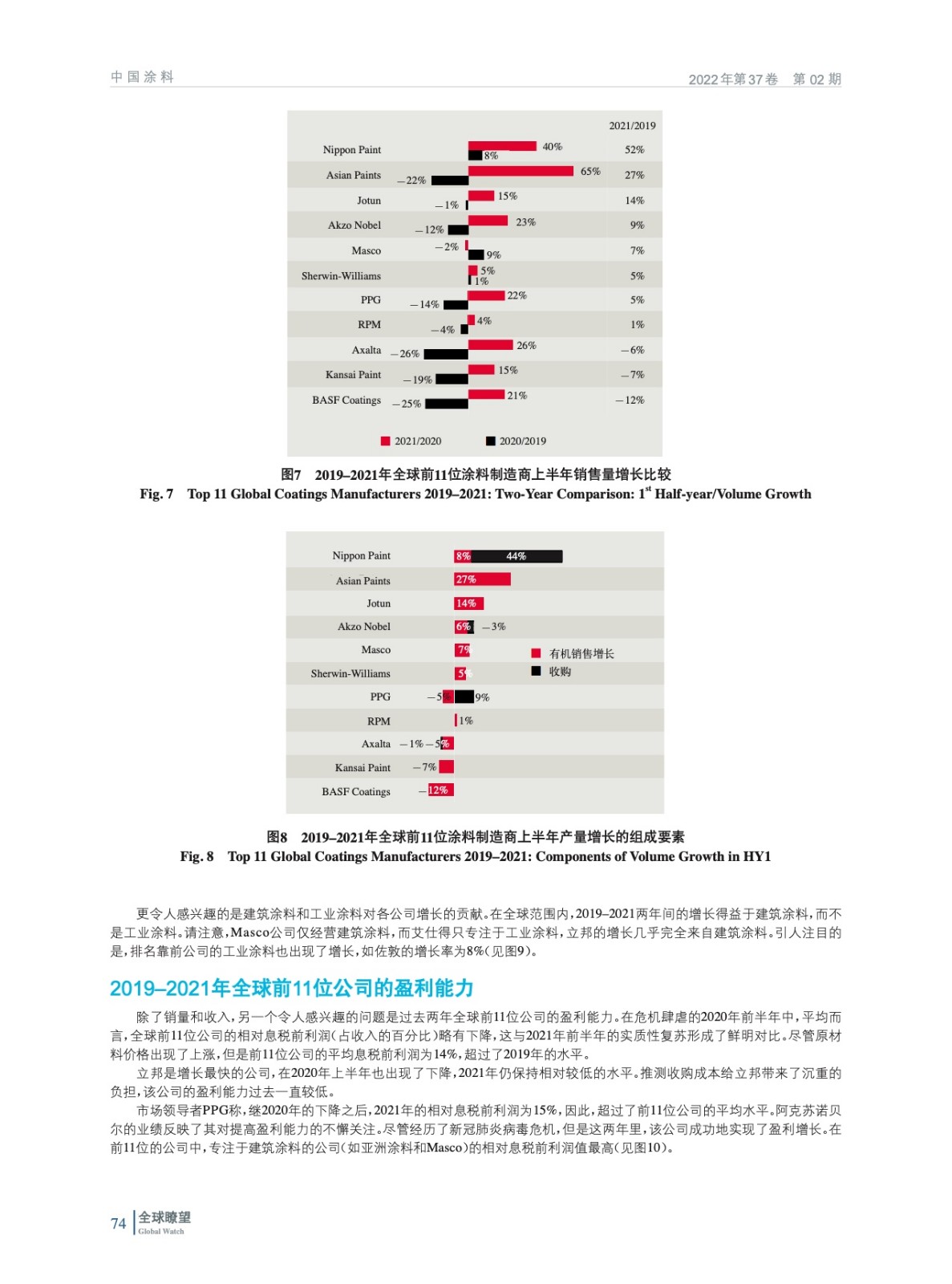 摘要:編者按:過去兩年,在涂料行業的前11位涂料制造商中,哪些公司能夠最好地應對新冠肺炎疫情危機?在涂料行業跨國公司的2021年上半年財務報告中,銷售增長令人眼花繚亂。那么,“一切都好起來了”嗎?本文將進一步深入研究這些公司的銷售額、銷售量,分析“有機銷售增長”和“收購”,以及“建筑涂料”和“工業涂料”細分市場的相對變化。最后,將快速了解這些公司的盈利能力。