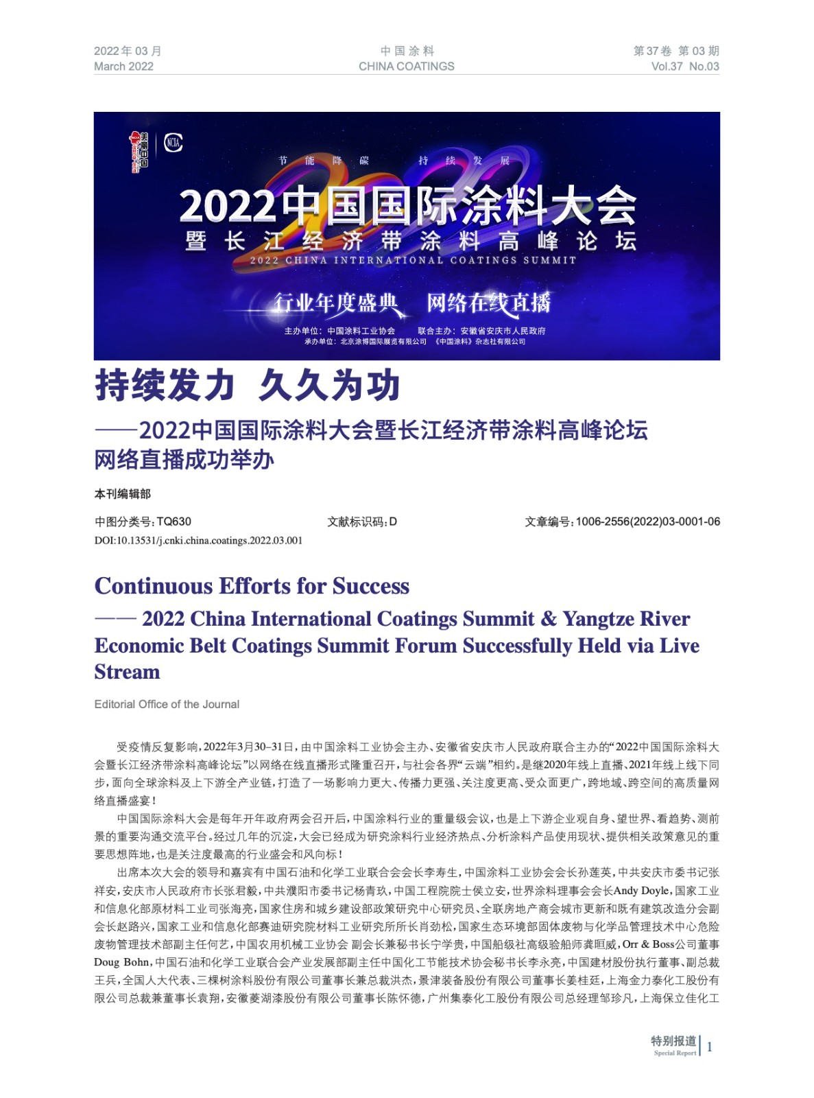 持續(xù)發(fā)力 久久為功——2022中國國際涂料大會暨長江經濟帶涂料高峰論壇網絡直播成功舉辦