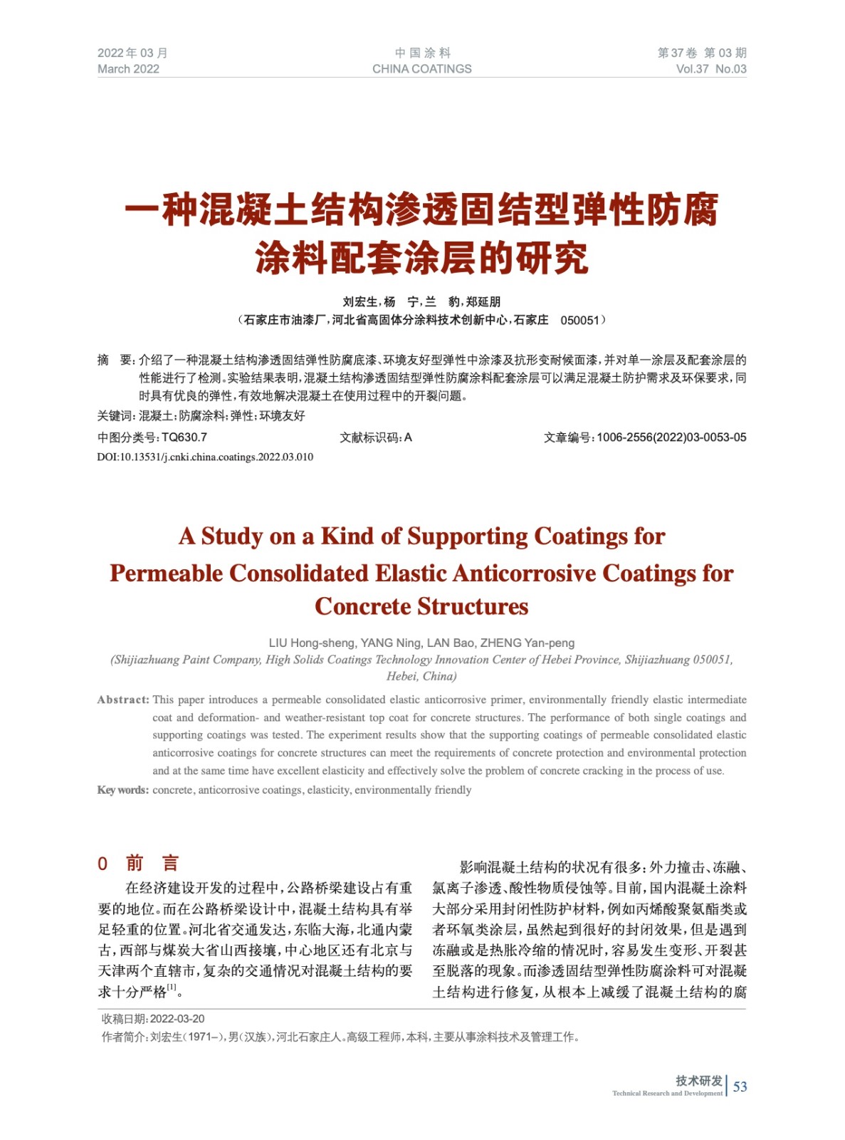 本文系作者@劉宏生,楊 寧,蘭 豹,鄭延朋 授權中國涂料網發表,并經中國涂料網編輯,未經允許不得轉載,如需轉載請聯系chinacoatingnet@vip.163.com