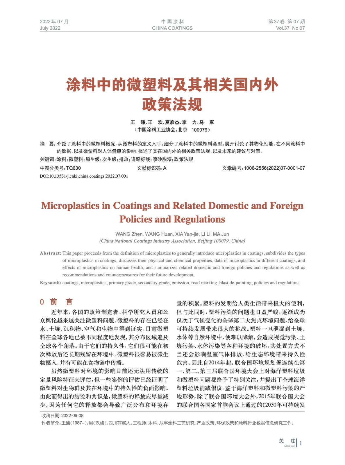 涂料中的微塑料及其相關(guān)國(guó)內(nèi)外政策法規(guī)