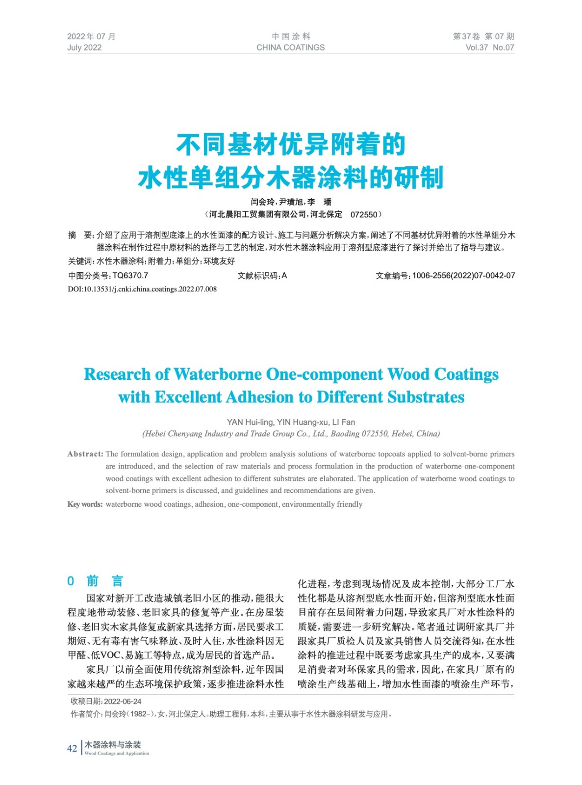 本文系作者@閆會玲,尹璜旭,李 璠 授權中國涂料網發表,并經中國涂料網編輯,未經允許不得轉載,如需轉載請聯系chinacoatingnet@vip.163.com