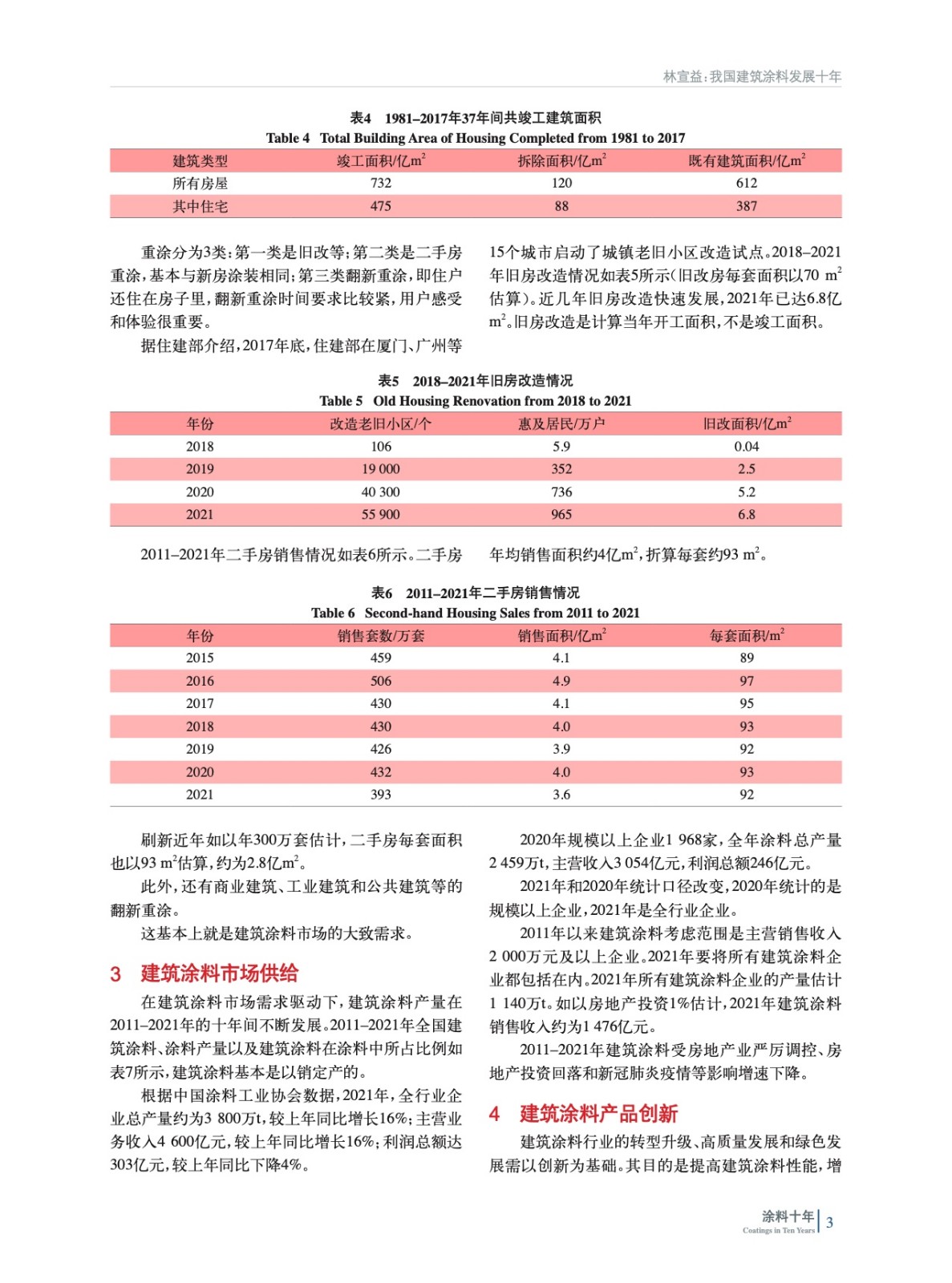 在2012–2021年的十年間,在嚴厲的房地產調控 和舊房翻新等新動力的作用下,在建筑涂料行業內部 創新的推動下,我國建筑涂料不斷向前發展。