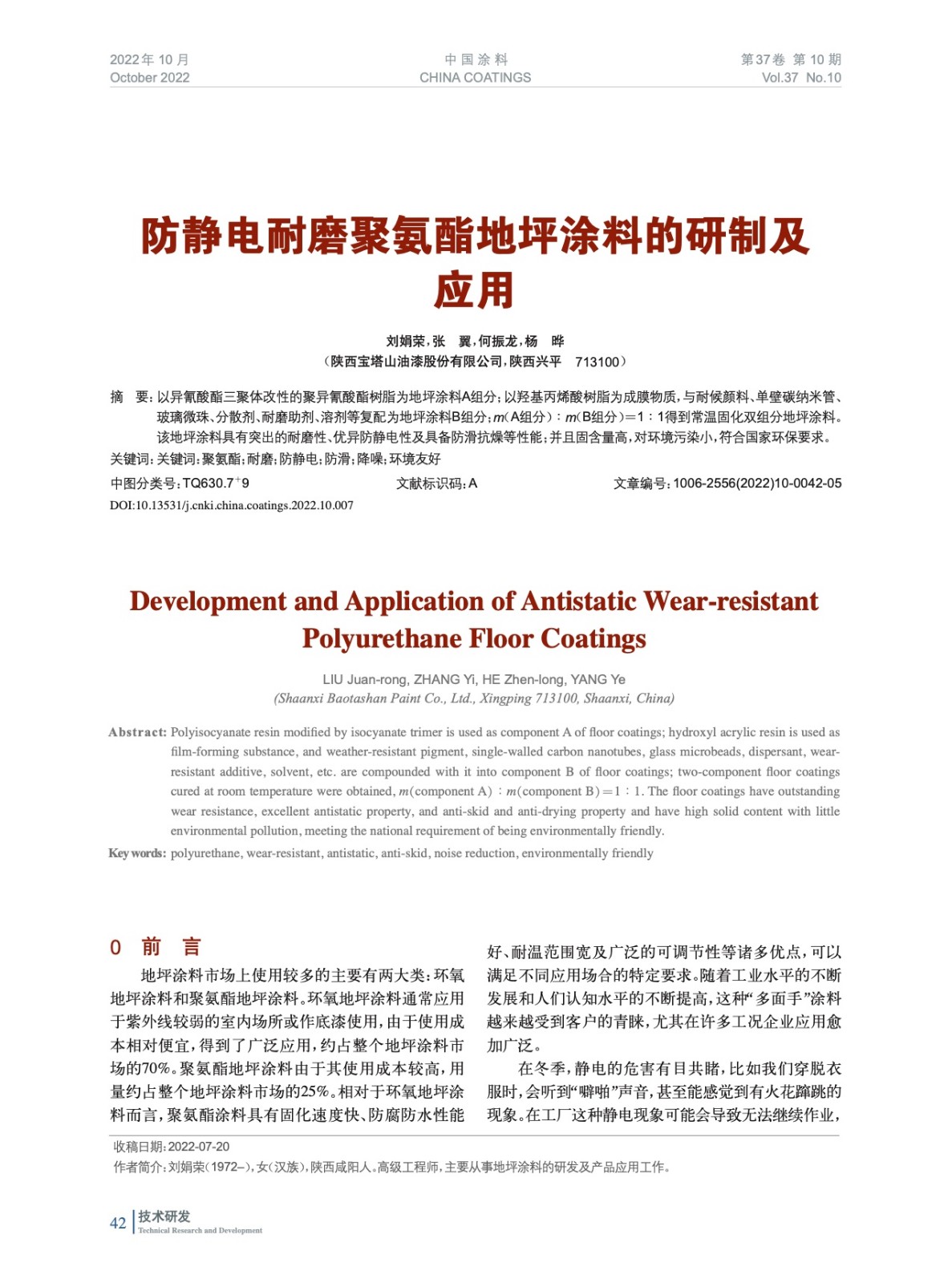 防靜電耐磨聚氨酯地坪涂料的研制及應用