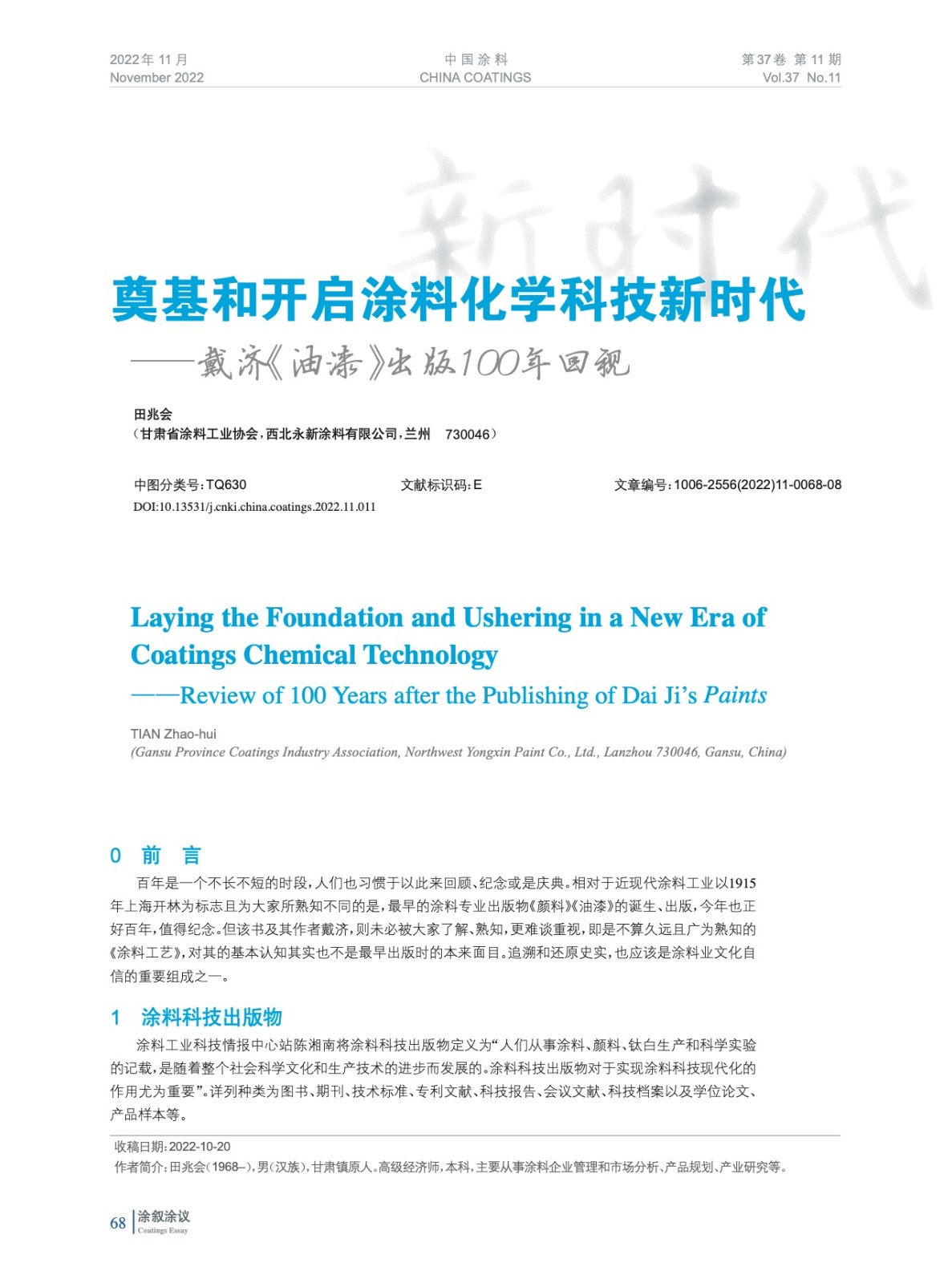 奠基和開啟涂料化學科技新時代——戴濟《油漆》出版100年回視