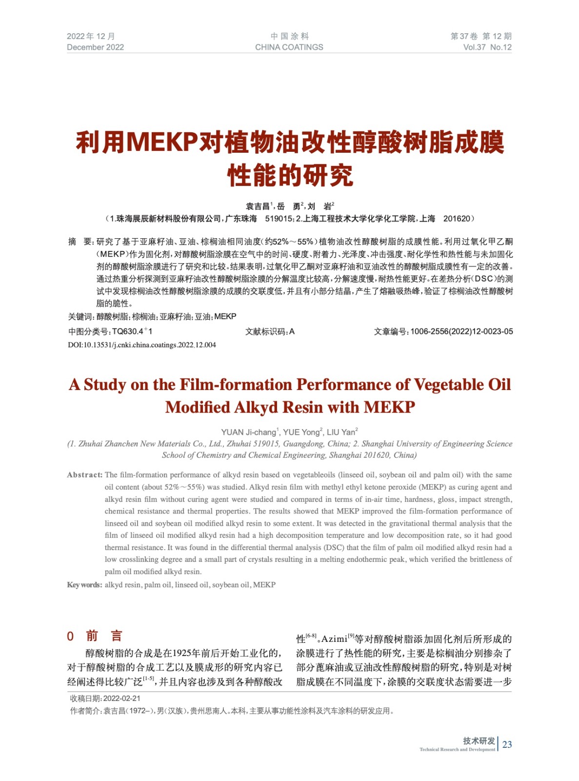 本文系作者@袁吉昌,岳 勇,劉 巖 授權中國涂料網發表,并經中國涂料網編輯,未經允許不得轉載,如需轉載請聯系chinacoatingnet@vip.163.com
