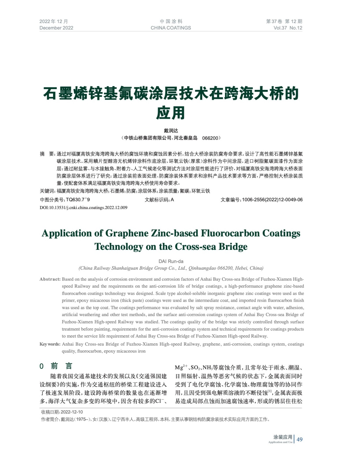 石墨烯鋅基氟碳涂層技術(shù)在跨海大橋的應(yīng)用