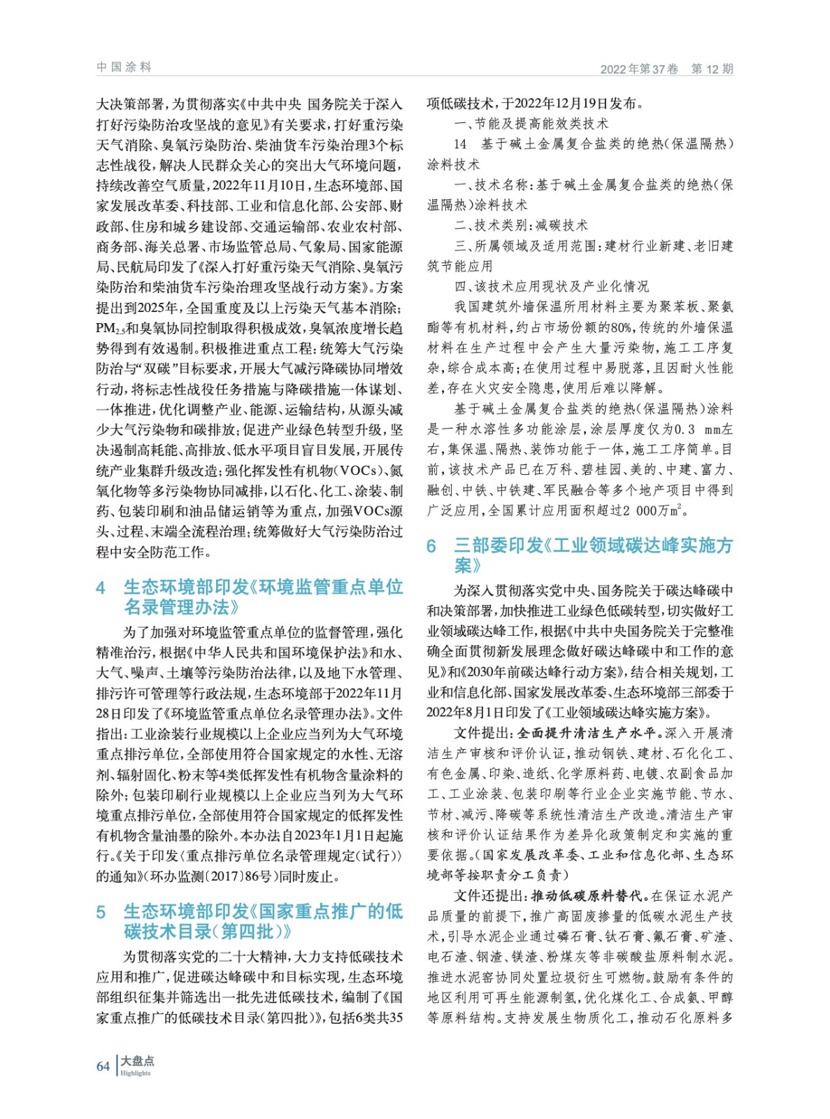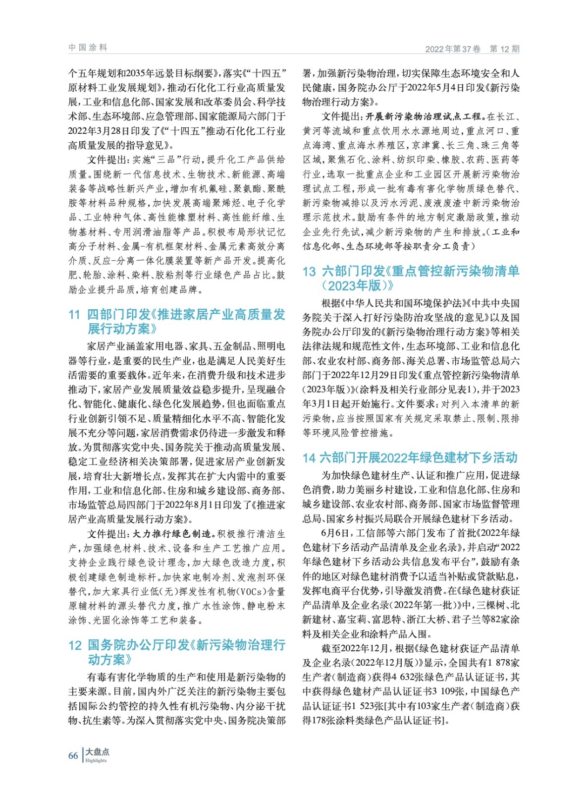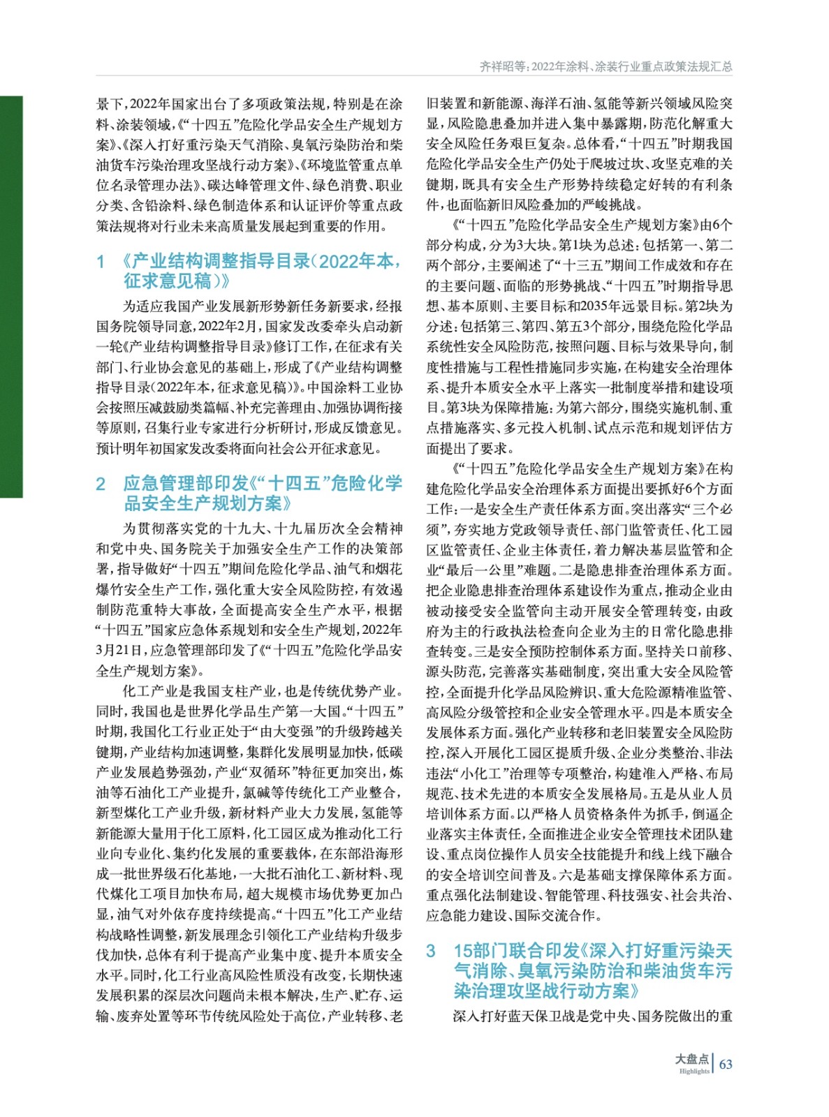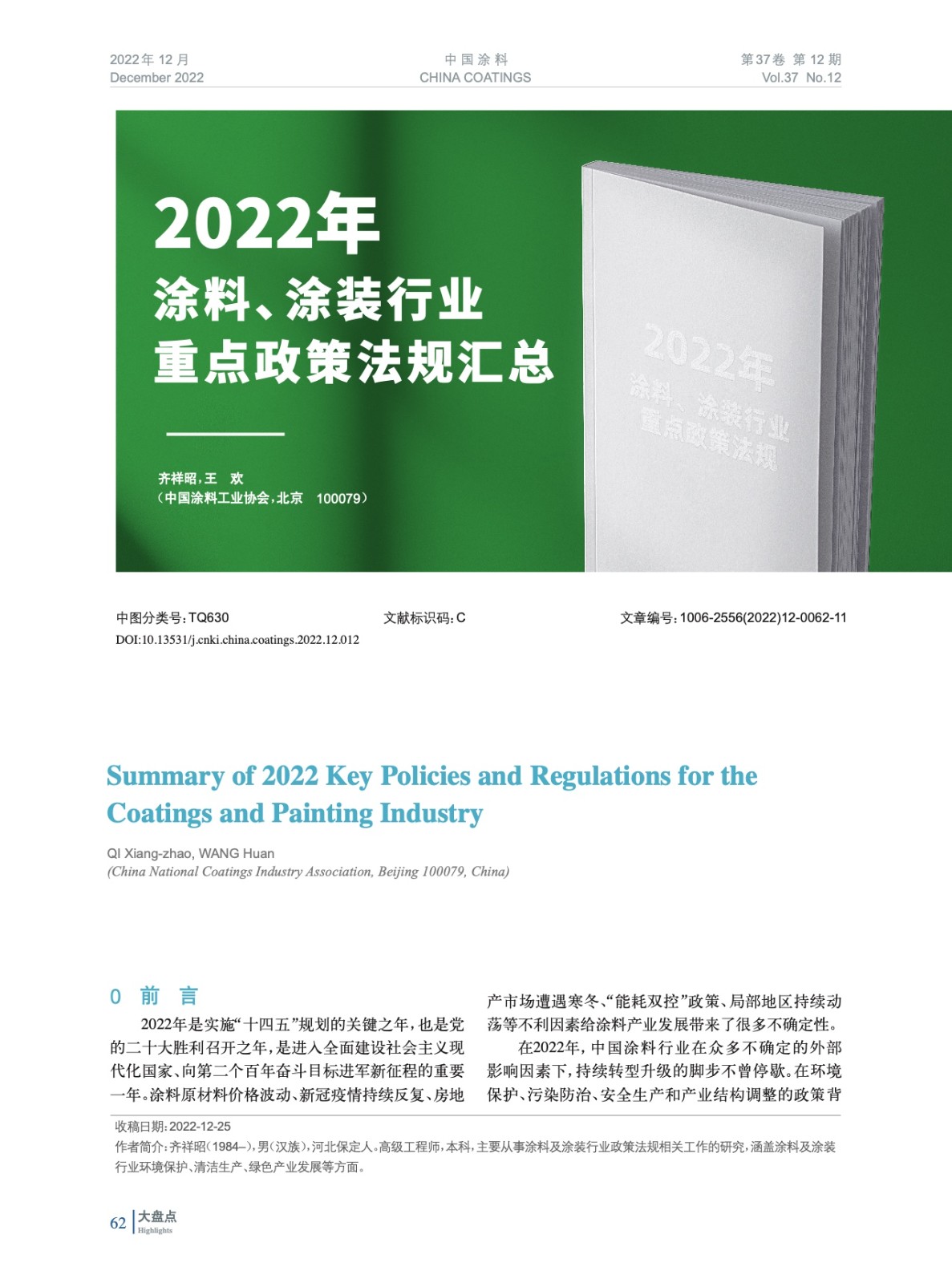 摘要:編者按:在環(huán)境保護(hù)、污染防治、安全生產(chǎn)和產(chǎn)業(yè)結(jié)構(gòu)調(diào)整的政策背景下,2022年國(guó)家出臺(tái)了多項(xiàng)政策法規(guī),特別是在涂料、涂裝領(lǐng)域,《“十四五”危險(xiǎn)化學(xué)品安全生產(chǎn)規(guī)劃方案》、《深入打好重污染天氣消除、臭氧污染防治和柴油貨車污染治理攻堅(jiān)戰(zhàn)行動(dòng)方案》、《環(huán)境監(jiān)管重點(diǎn)單位名錄管理辦法》、碳達(dá)峰管理文件、綠色消費(fèi)、職業(yè)分類、含鉛涂料、綠色制造體系和認(rèn)證評(píng)價(jià)等重點(diǎn)政策法規(guī)將對(duì)行業(yè)未來(lái)高質(zhì)量發(fā)展起到重要的作用。