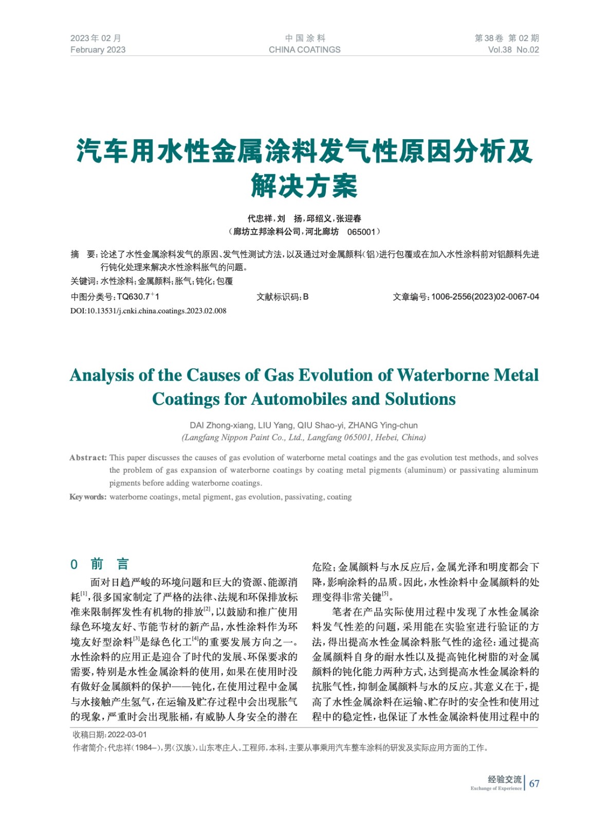 本文系作者@代忠祥,劉 揚,邱紹義,張迎春 授權中國涂料網發表,并經中國涂料網編輯,未經允許不得轉載,如需轉載請聯系chinacoatingnet@vip.163.com
