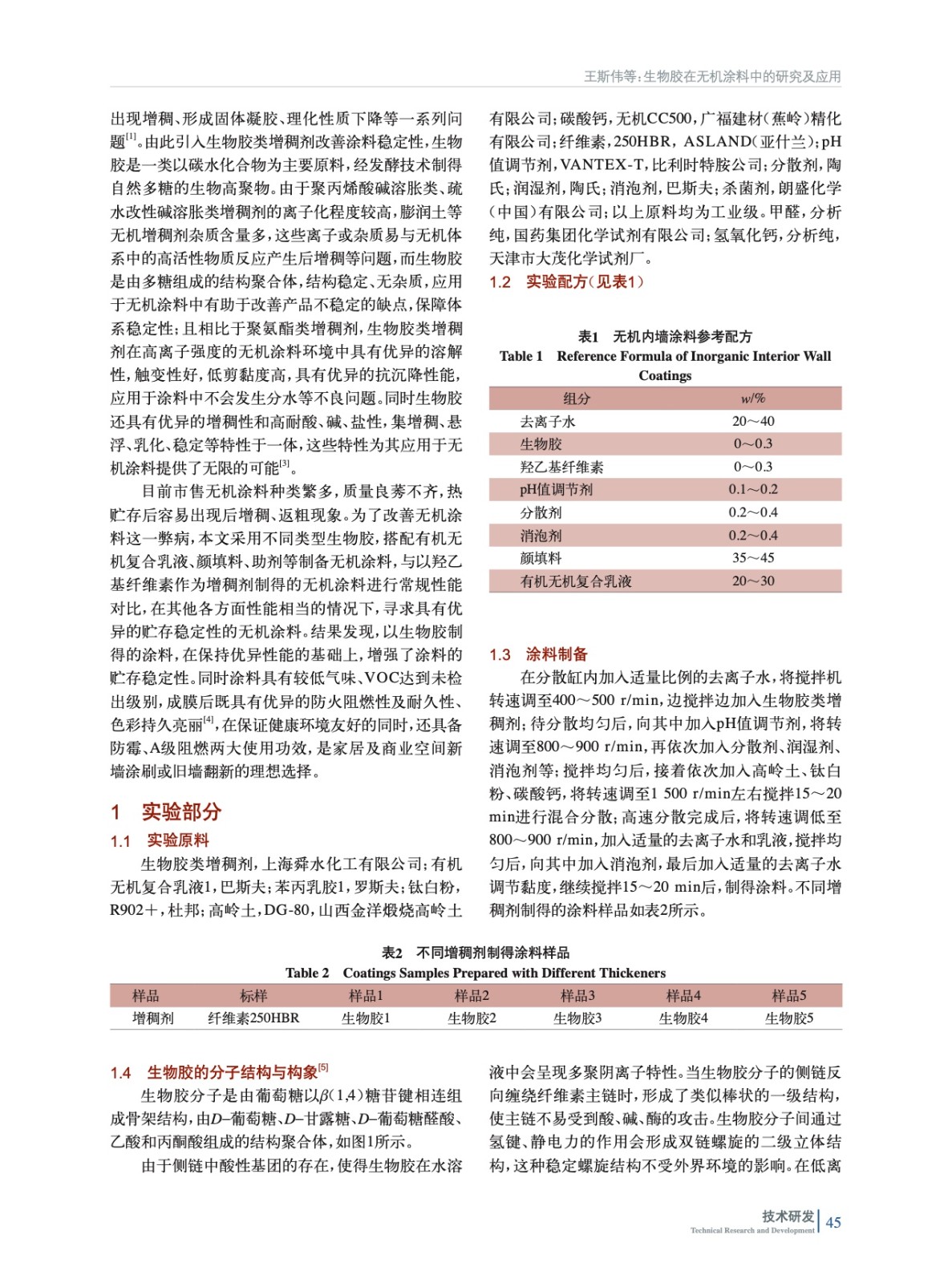生物膠在無機涂料中的研究及應用