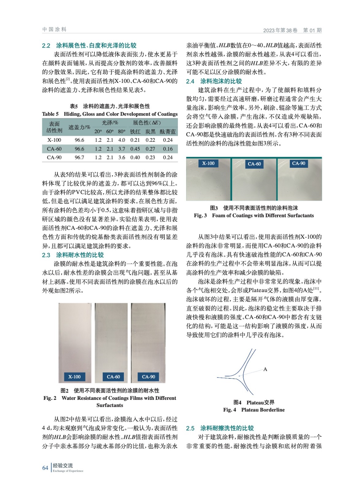 摘要:研究了低泡表面活性劑在經濟型建筑涂料中的應用。將低泡表面活性劑應用于涂料配方中,測試了涂料的展色性、耐水性、遮蓋力、光澤、泡沫和耐擦洗性,并和傳統的烷基酚類表面活性劑X-100進行了對比。使用低泡表面活性劑的涂料在遮蓋力、光澤、展色性和耐水性方面都可以滿足經濟型建筑涂料的要求,且和傳統烷基酚類表面活性劑相比沒有明顯的差異;使用低泡表面活性劑的涂料泡沫不明顯,但使用傳統烷基酚類表面活性劑會導致明顯的涂料泡沫;使用低泡表面活性劑的涂料,其涂膜的耐擦洗性都可以滿足建筑涂料的要求。本實驗研究的低泡表面活性劑都是環境友好型的非離子表面活性劑,均可應用于經濟型建筑涂料的配方開發。
