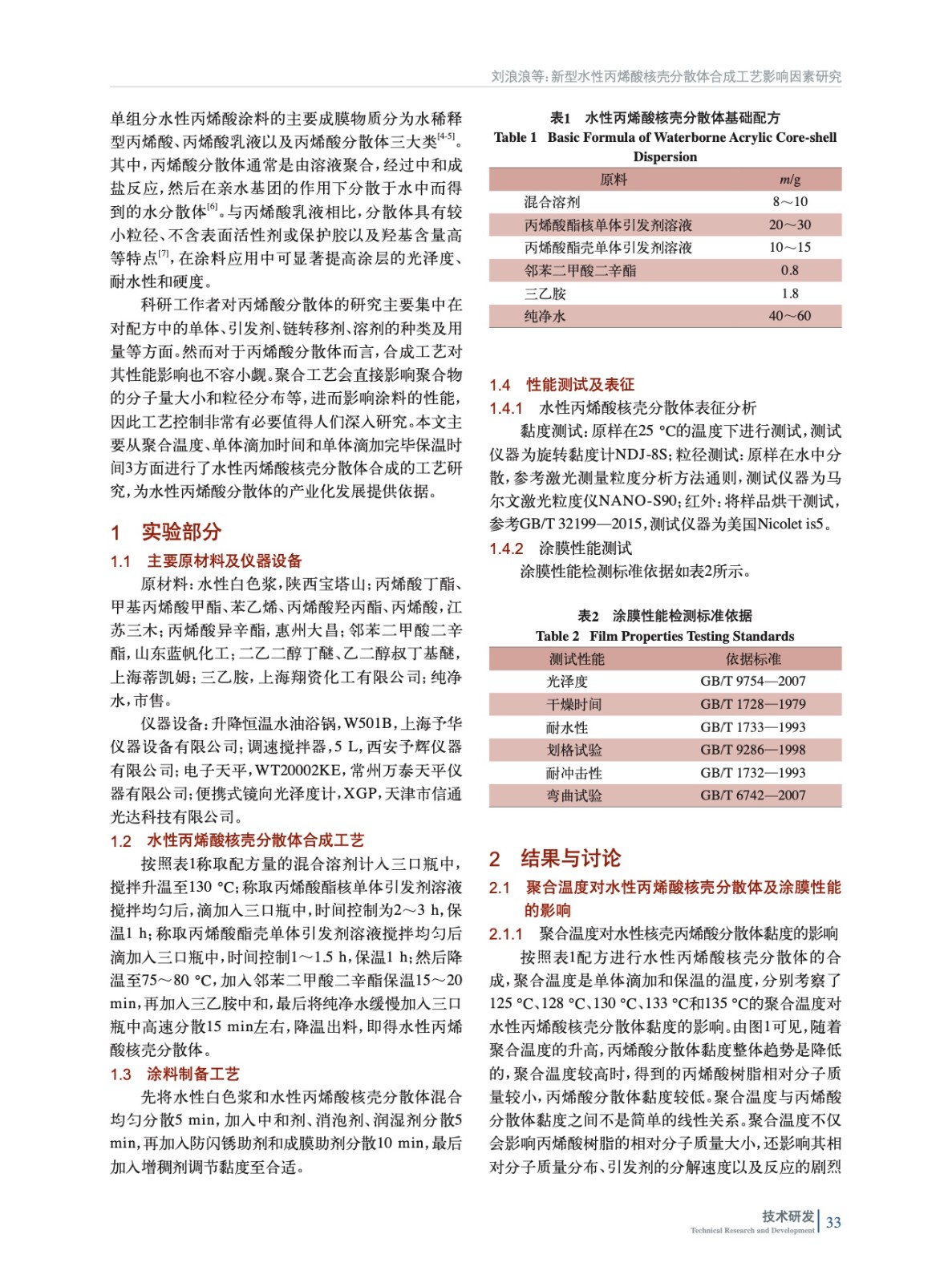 新型水性丙烯酸核殼分散體合成工藝影響因素研究