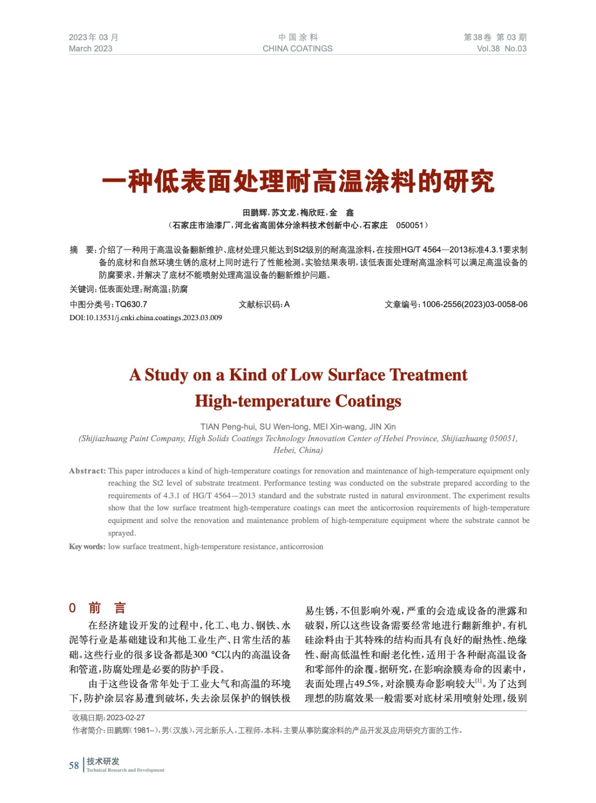 本文系作者@田鵬輝,蘇文龍,梅欣旺,金 鑫 授權(quán)中國涂料網(wǎng)發(fā)表,并經(jīng)中國涂料網(wǎng)編輯,未經(jīng)允許不得轉(zhuǎn)載,如需轉(zhuǎn)載請(qǐng)聯(lián)系chinacoatingnet@vip.163.com