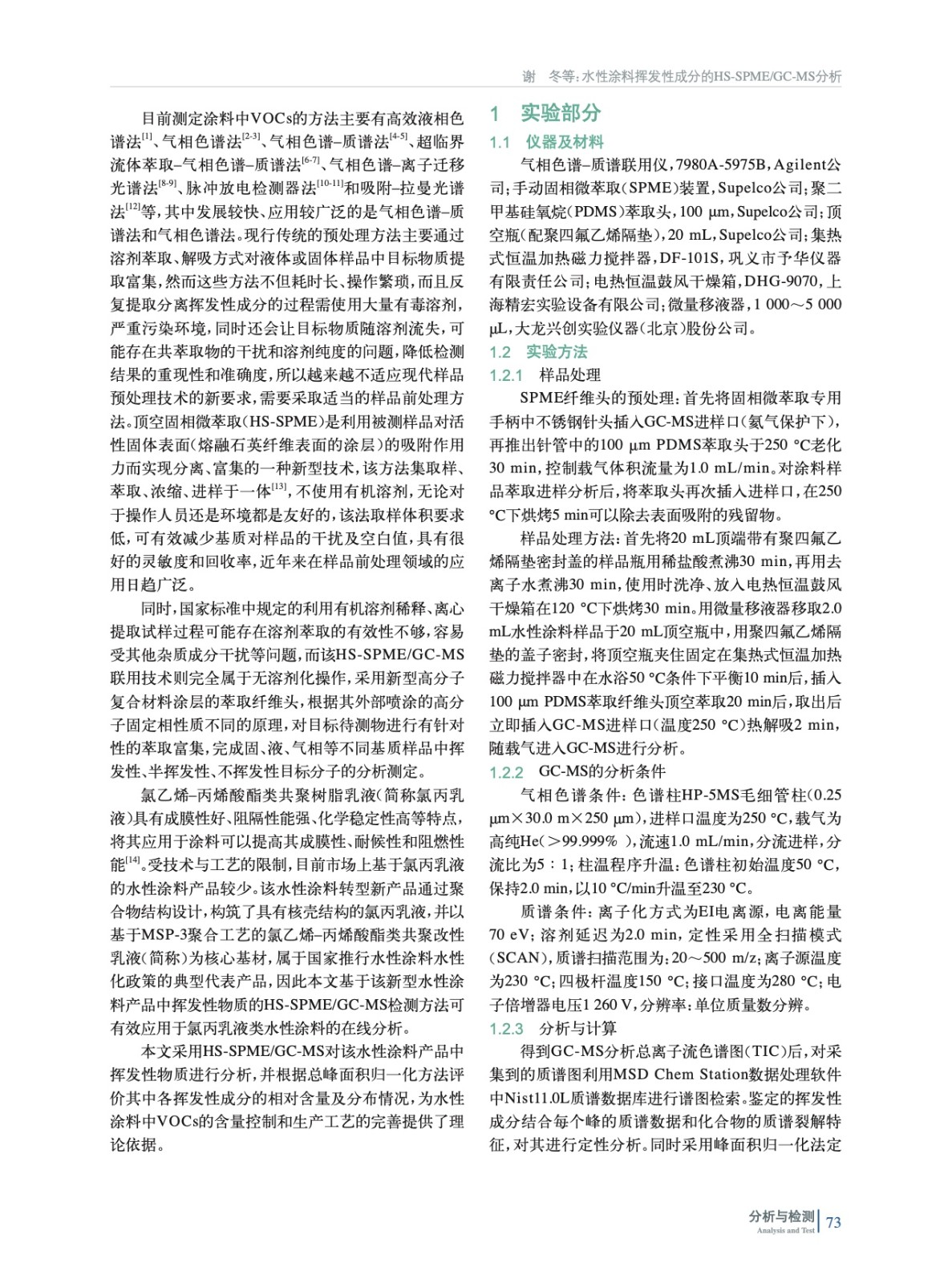 水性涂料揮發性成分的HS-SPME/GC-MS分析