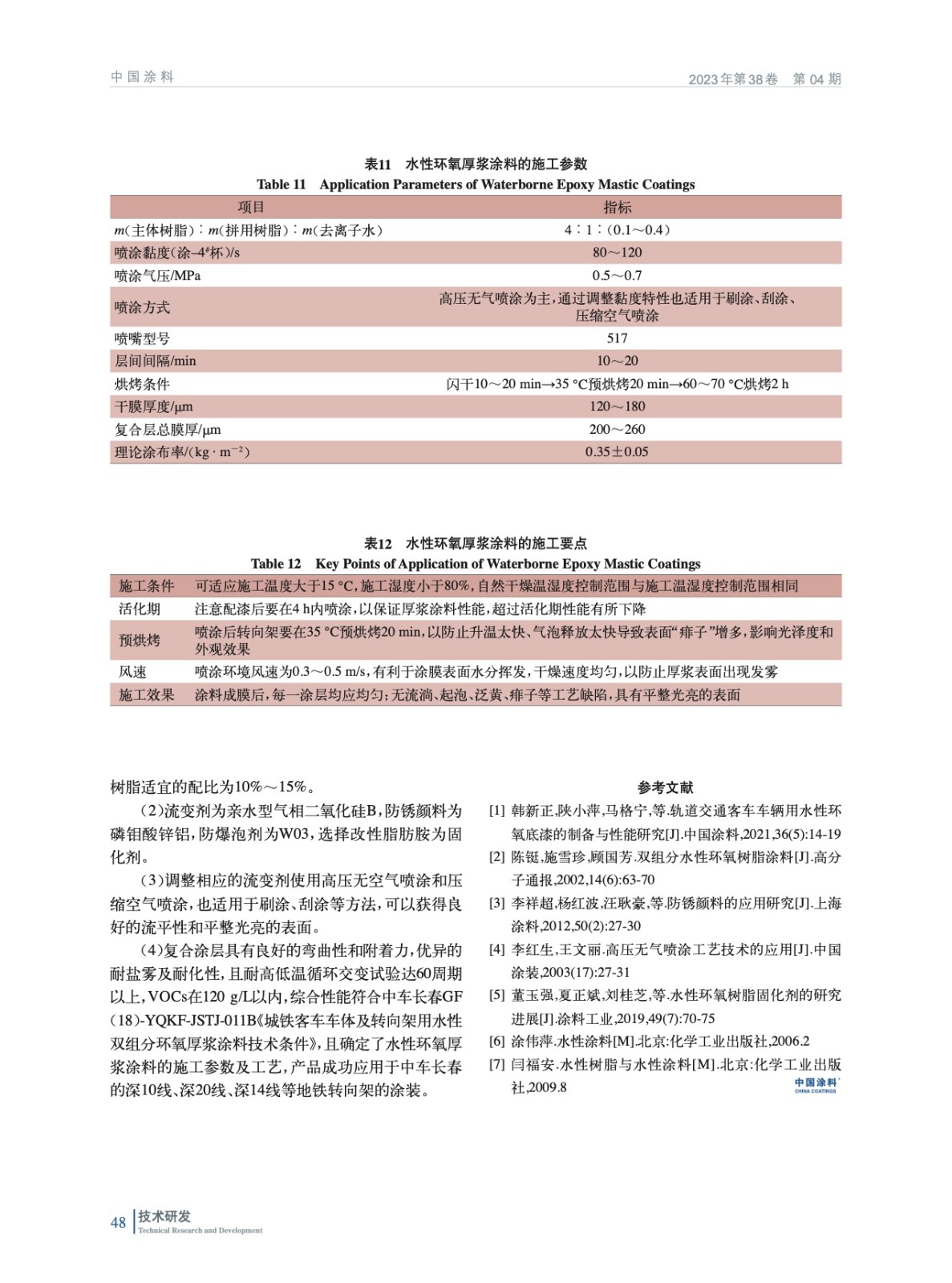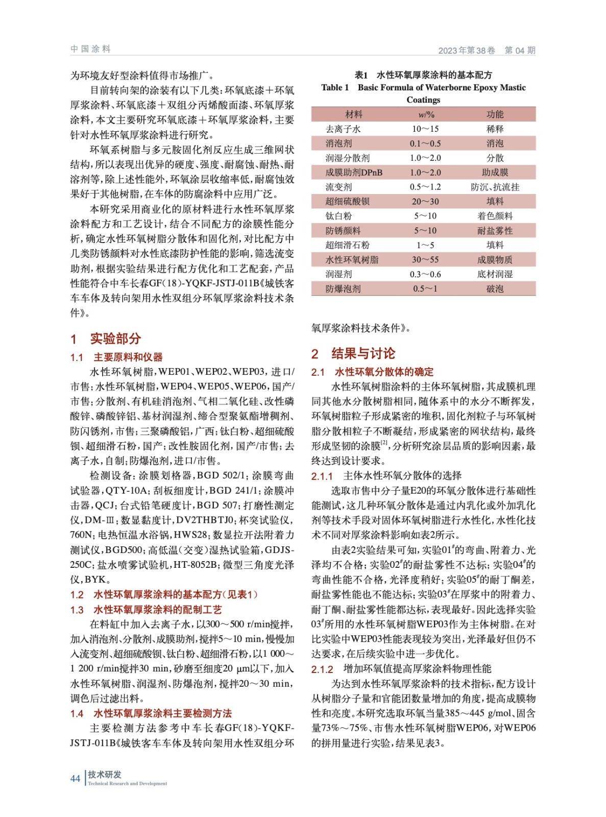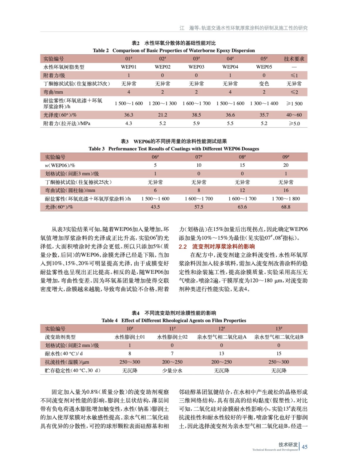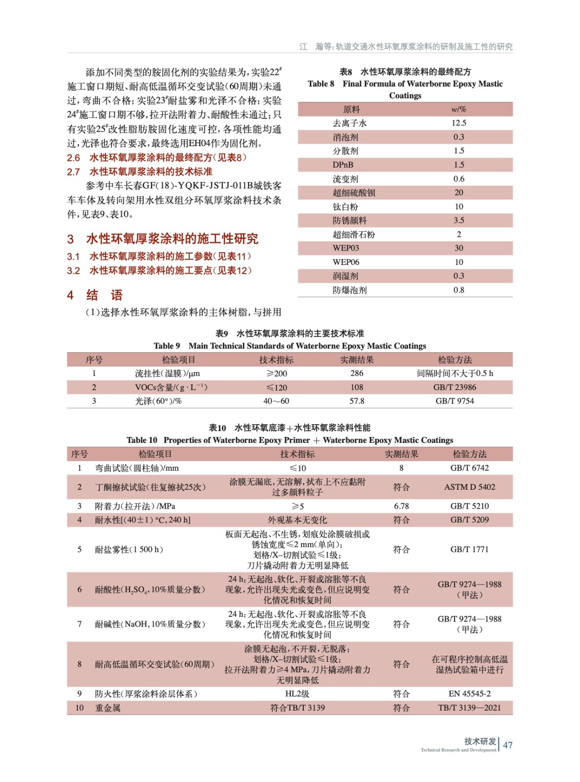 軌道交通水性環氧厚漿涂料的研制及施工性的研究