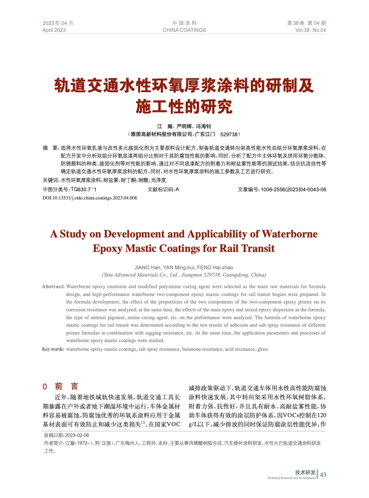 發表于2023-07-23 23:06:30| 次閱讀| 來源中國涂料| 作者江 瀚,嚴明輝,馮海釗