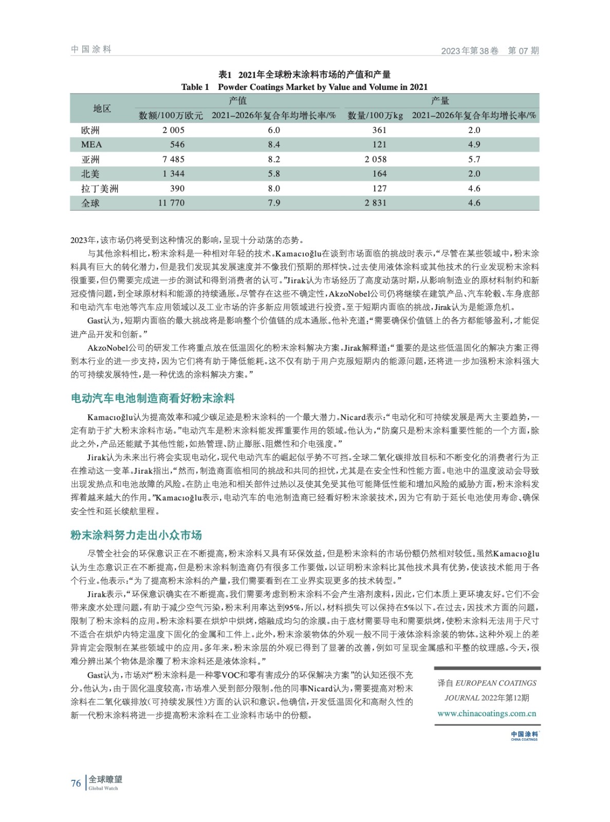 摘要:一般而言,粉末涂料市場在2020年達到了新冠疫情期的低點,但在2021年出現(xiàn)了良好反彈。最大的挑戰(zhàn)過去是現(xiàn)在仍是原材料的價格和短缺。盡管存在這些挑戰(zhàn),但是由于持續(xù)不斷的可持續(xù)發(fā)展趨勢,粉末涂料的全球前景仍然呈現(xiàn)一個樂觀的態(tài)勢。