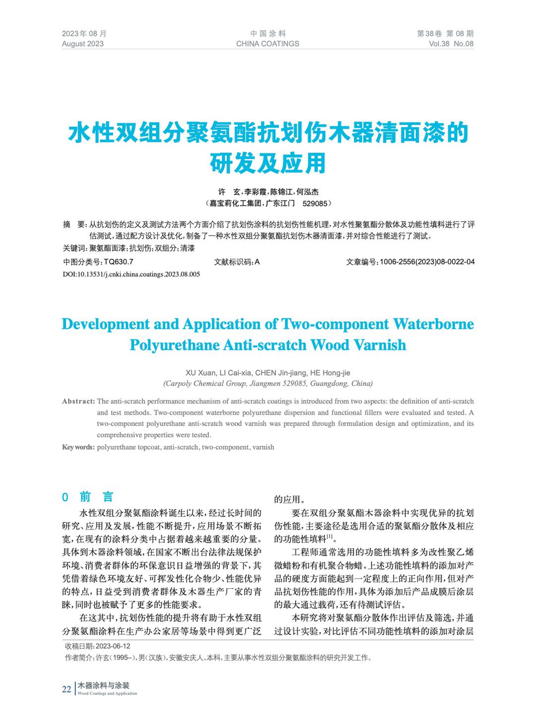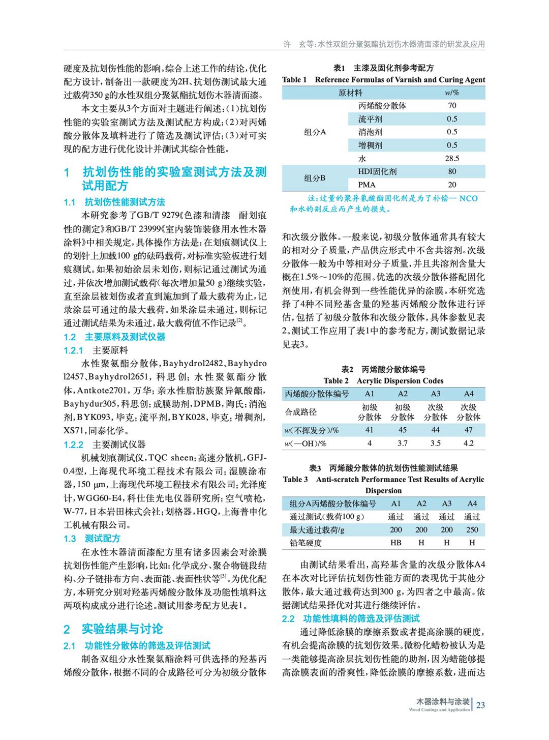 水性雙組分聚氨酯抗劃傷木器清面漆的研發(fā)及應(yīng)用