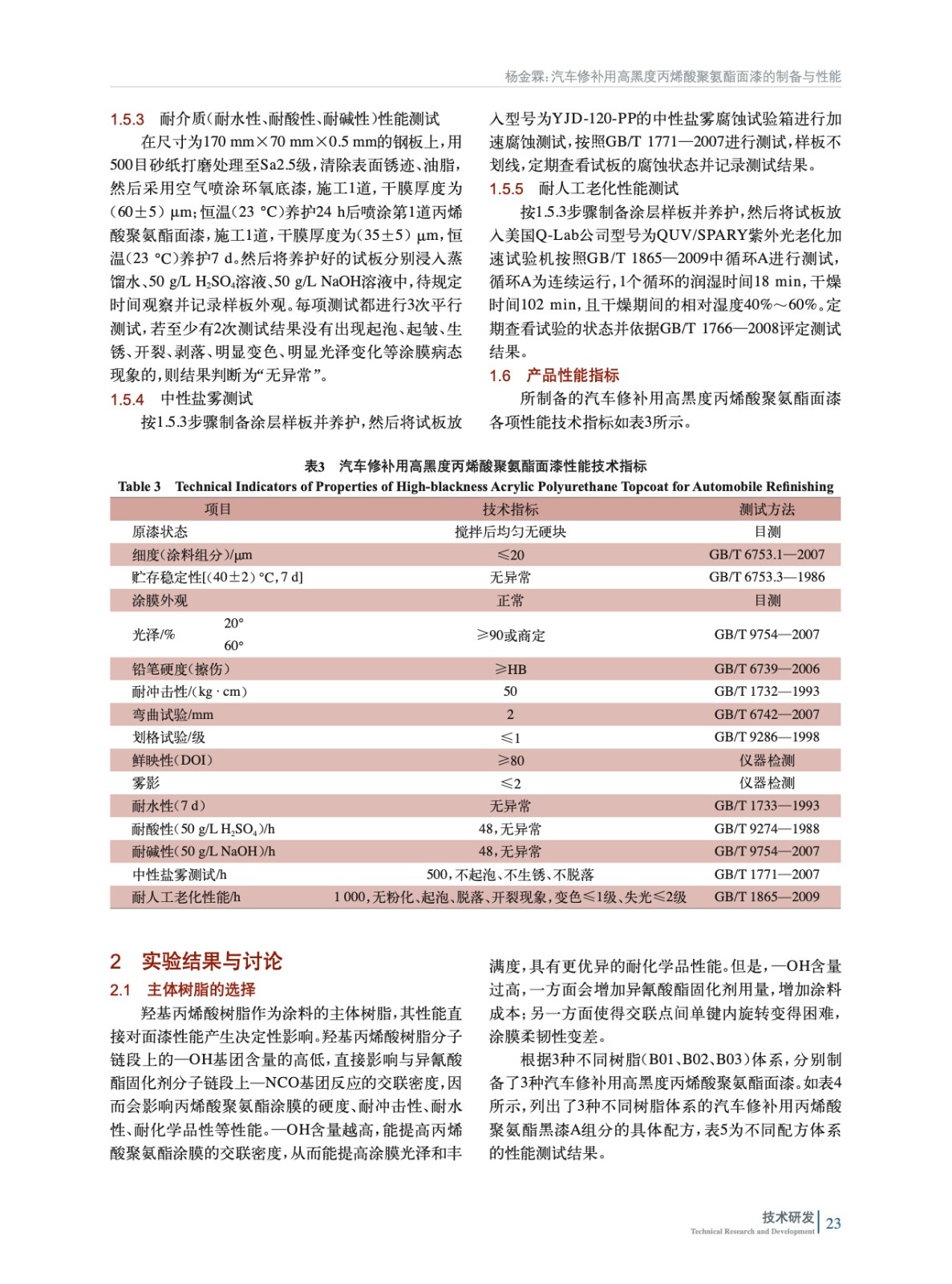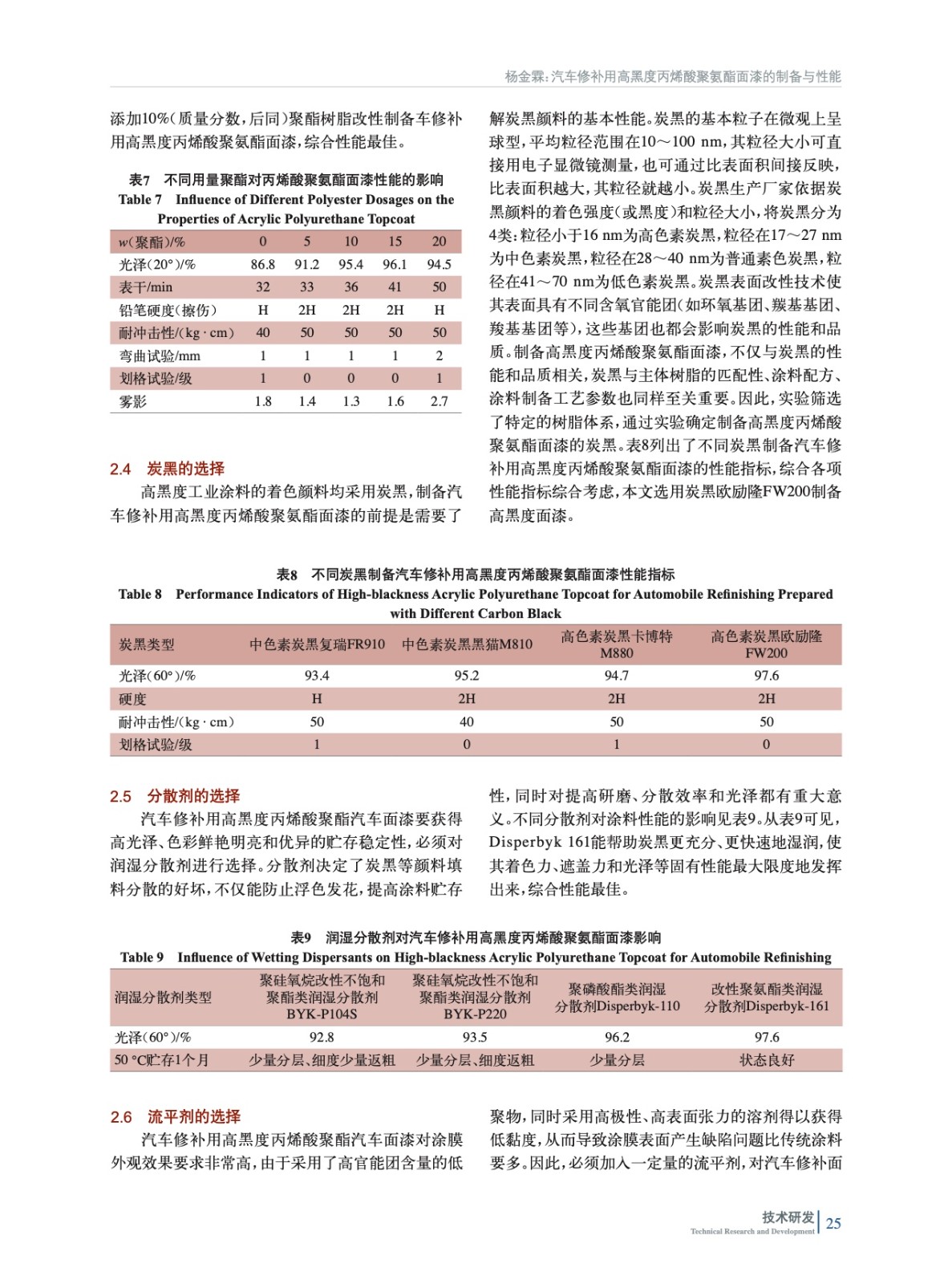汽車修補(bǔ)用高黑度丙烯酸聚氨酯面漆的制備與性能